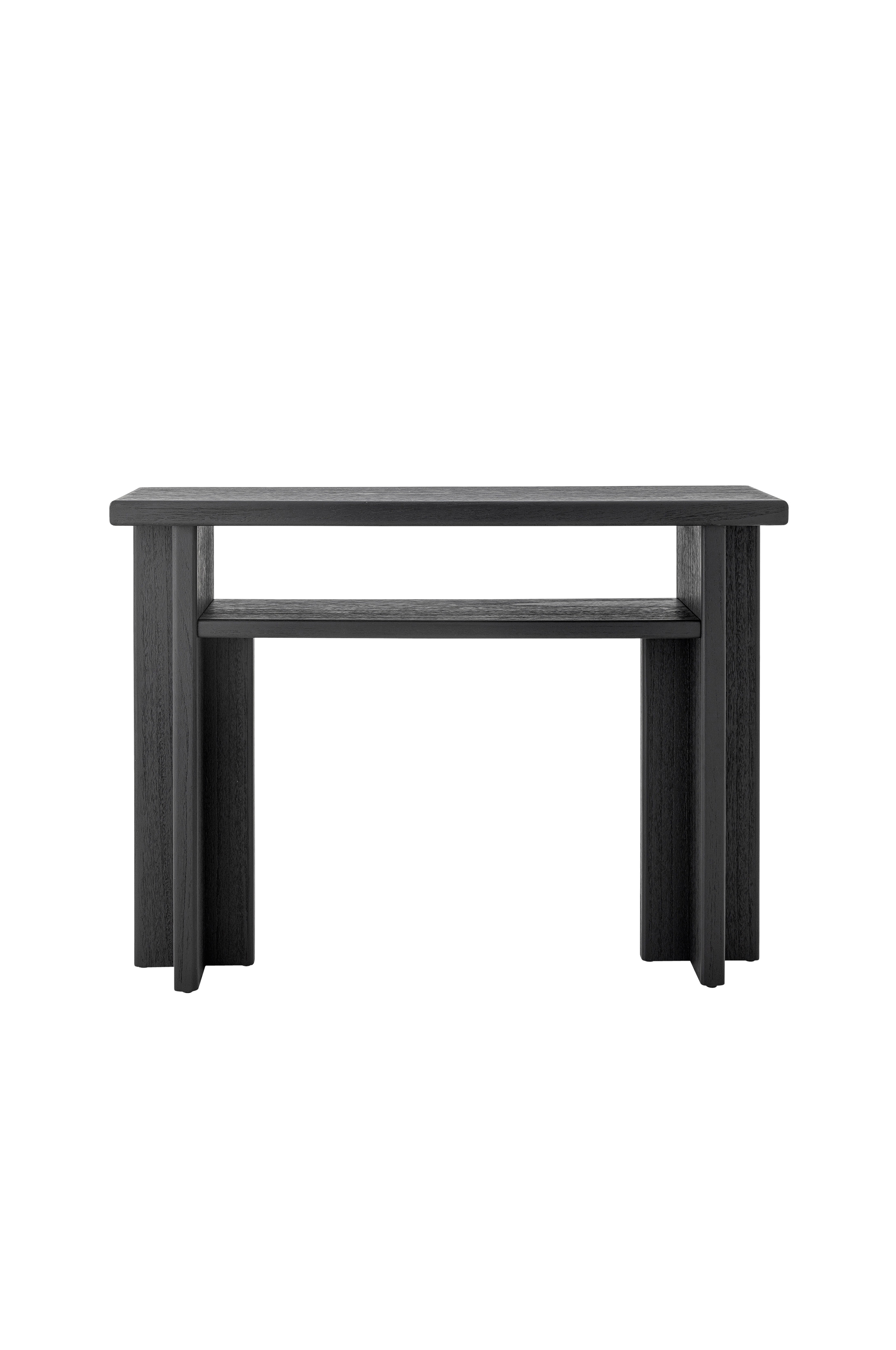 cupa konsollbord fra bloomingville er et elegant konsollbord laget av svart furu med en blank lakkfinish. Bordet har et moderne design med en liten hylle for oppbevaring av viktige gjenstander. Dette gjør bordet perfekt til entreen, stuen eller andre steder der det er behov for et diskret sted å oppbevare småting. Dimensjon: l110xh80,5xb32 cm
