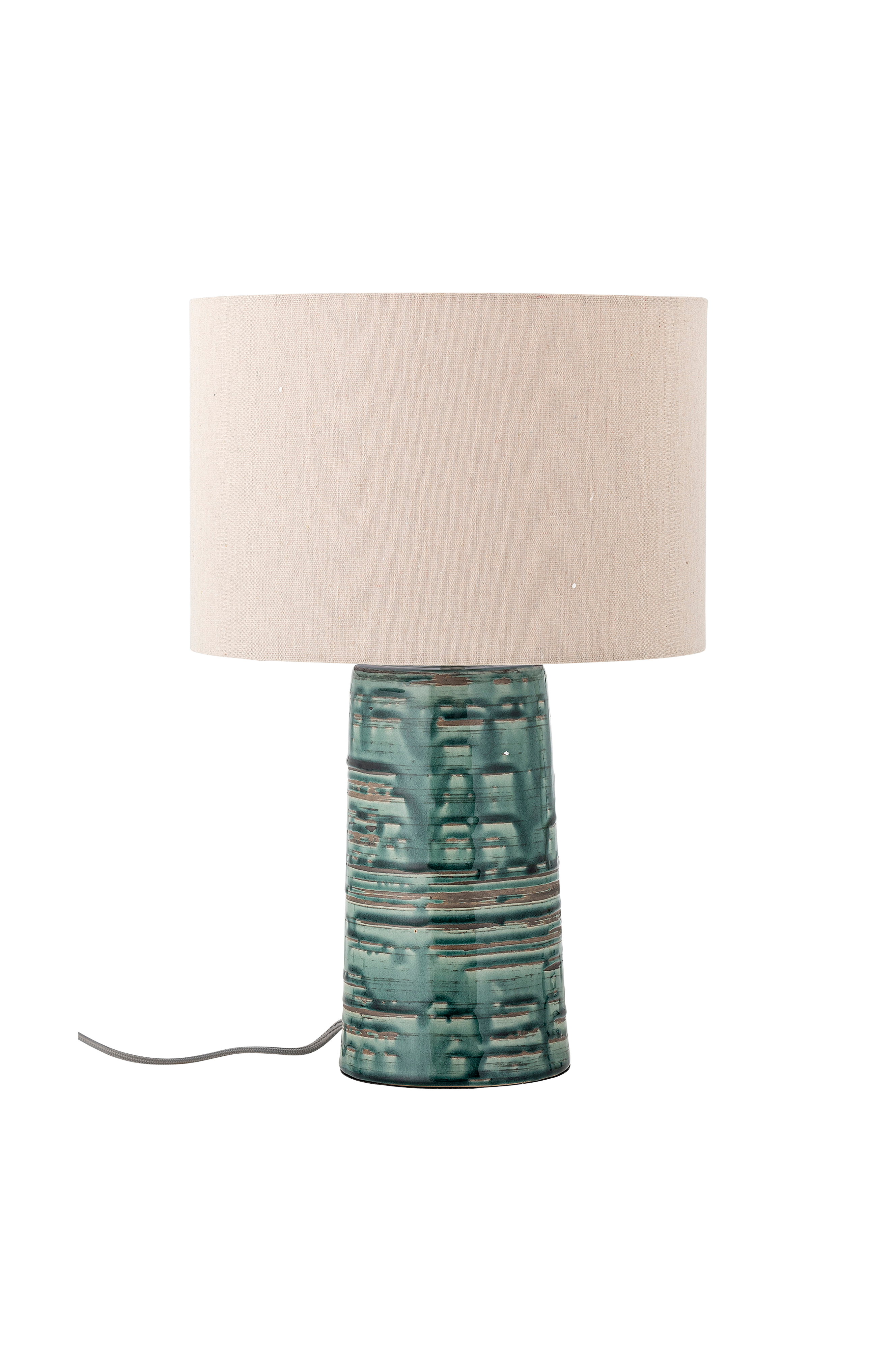 freyah bordlampe fra creative collection er en stilig lampe med en base av steintøy. Sokkelen har en reaktiv glasur som gir hver lampe et helt unikt utseende. De naturlige variasjonene i glasuren skaper et livlig uttrykk. Lampeskjermen er laget av lin i en naturlig farge, noe som gir et varmt og jordnært preg til designet. Bordlampen er perfekt for å skape en koselig atmosfære i ethvert rom og er like dekorativ som den er funksjonell. Dimensjon: d30,5xh46 cmlampeskjermstørrelse: dia 30,5 x h20 cm