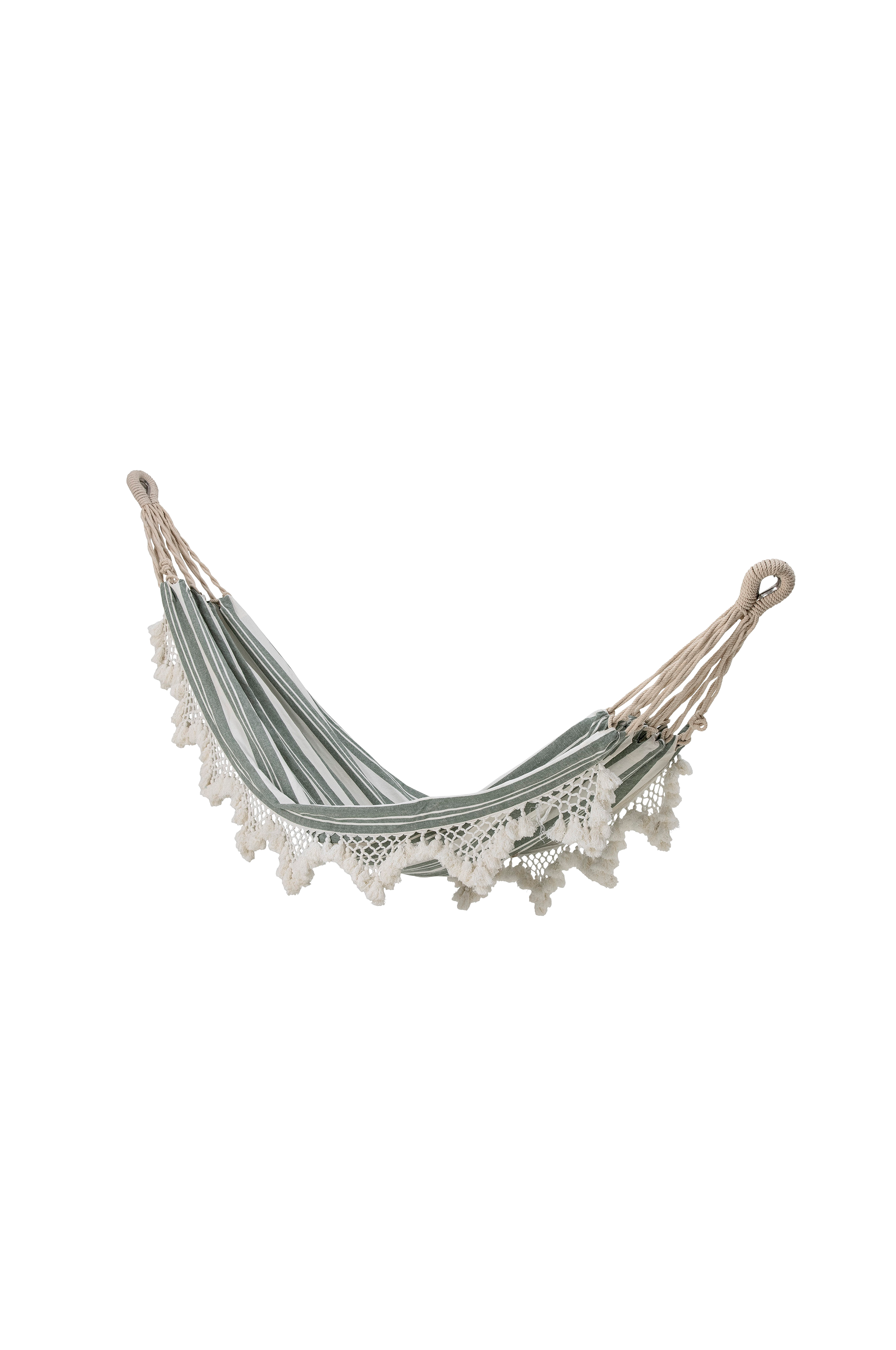 Cruz hengekøye fra Bloomingville er et koselig innslag i hagen, og perfekt på varme sommerdager. Hengekøyen er fremstilt av bomull i en grønn nyanse, og har små, søte detaljer på sidene.