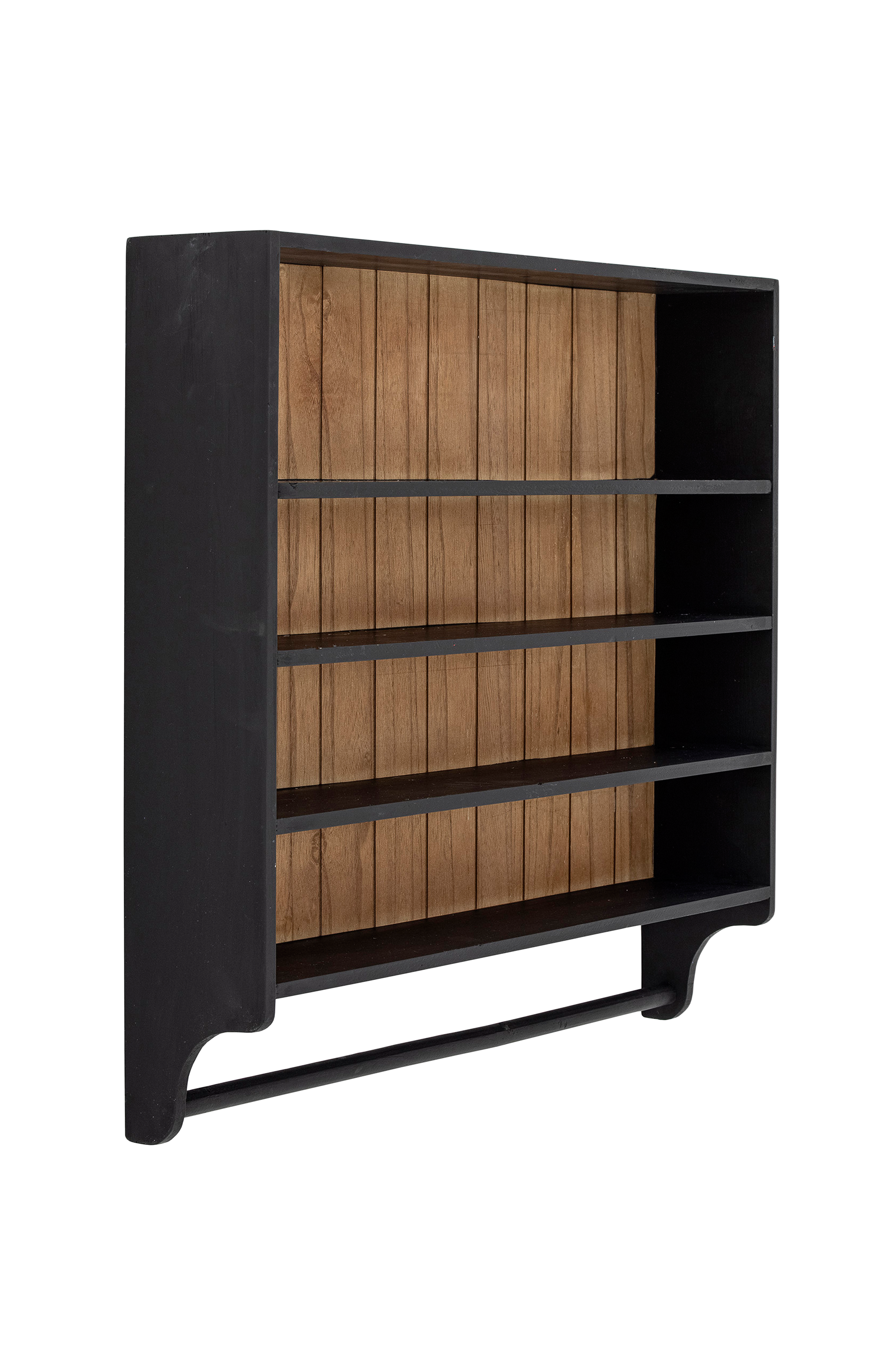 Loup hylle fra Bloomingville er produsert av svartbeiset furu med paneler i naturfarge, og gir en rustikk følelse. Hyllen er perfekt til din samling av unike krus eller små pyntegjenstander, og skaper en koselig stemning. Plasser kroker eller papirsnorer nederst for å henge opp kjøkkenhåndklær og kurver.
