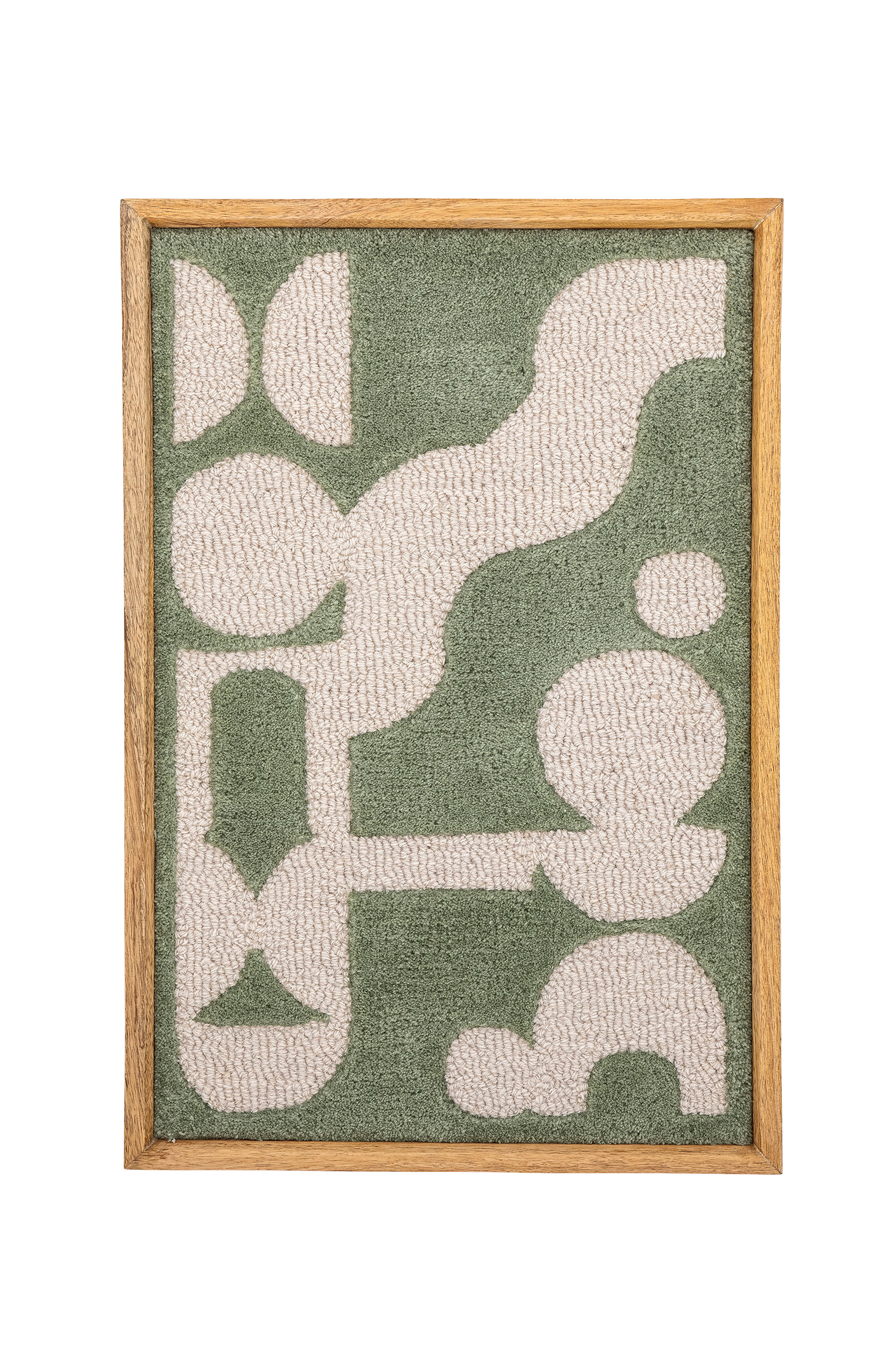 Veggdekorasjonen longton fra bloomingville består av harmoniske, organiske former på en myk, tuftet overflate i en vakker grønnfarge og lyse farger. Det grafiske mønsteret er vakkert innrammet i en treramme som gir det et naturlig og tidløst uttrykk. Veggdekorasjonen kan henges både vertikalt og horisontalt og vil gi varme og karakter til enhver vegg. H65xb45 cm