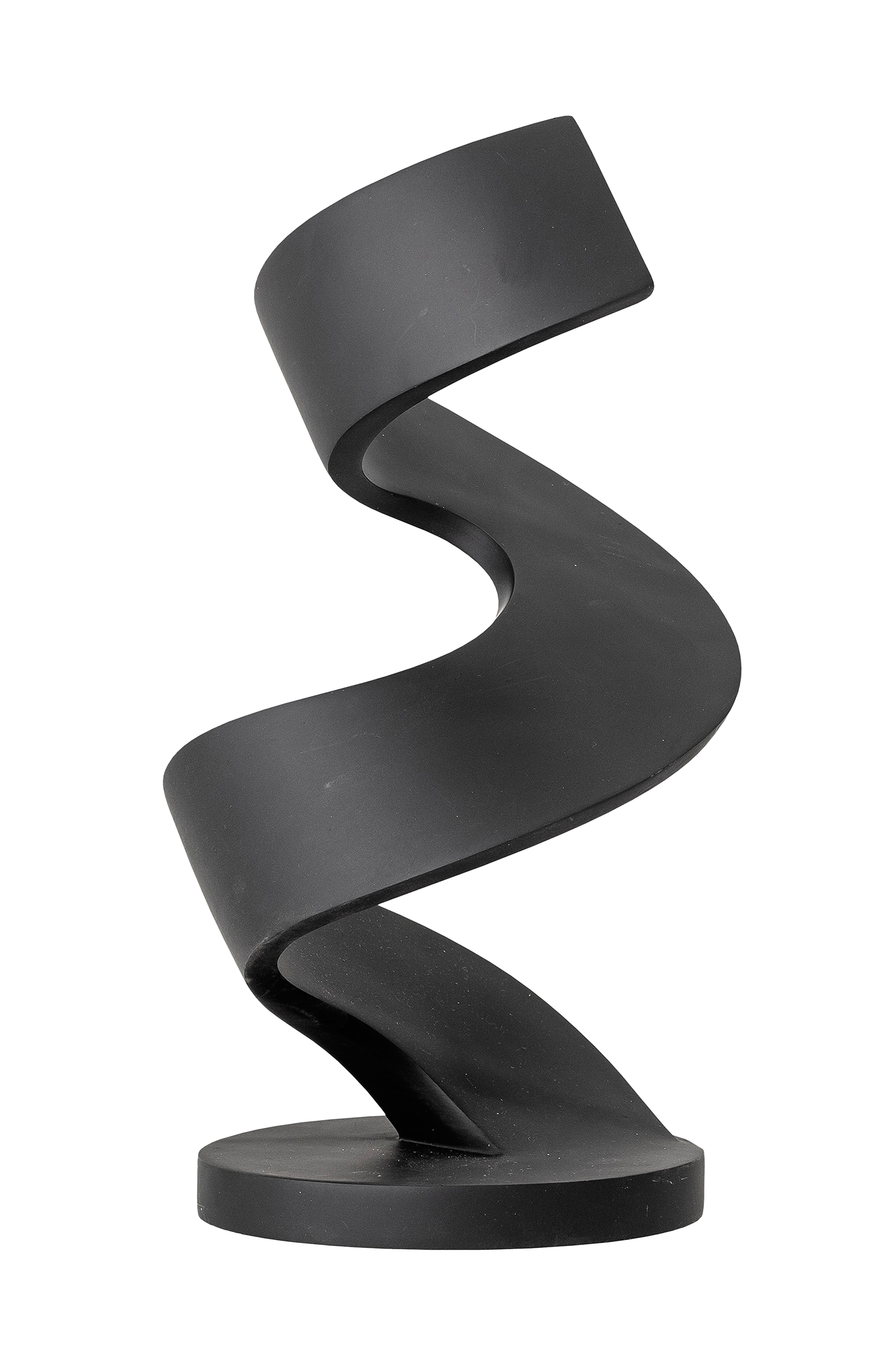 En enkel, men effektfull pyntegjenstand av svart polyresin, som utvilsomt tiltrekker seg oppmerksomhet med høyden og enkle designen. Fra den kompakte foten reiser det seg en flat spiral 32 cm opp, og skaper en høy og interessant form. Pyntegjenstanden passer fint på et bord, vindu, en skjenk eller hylle.