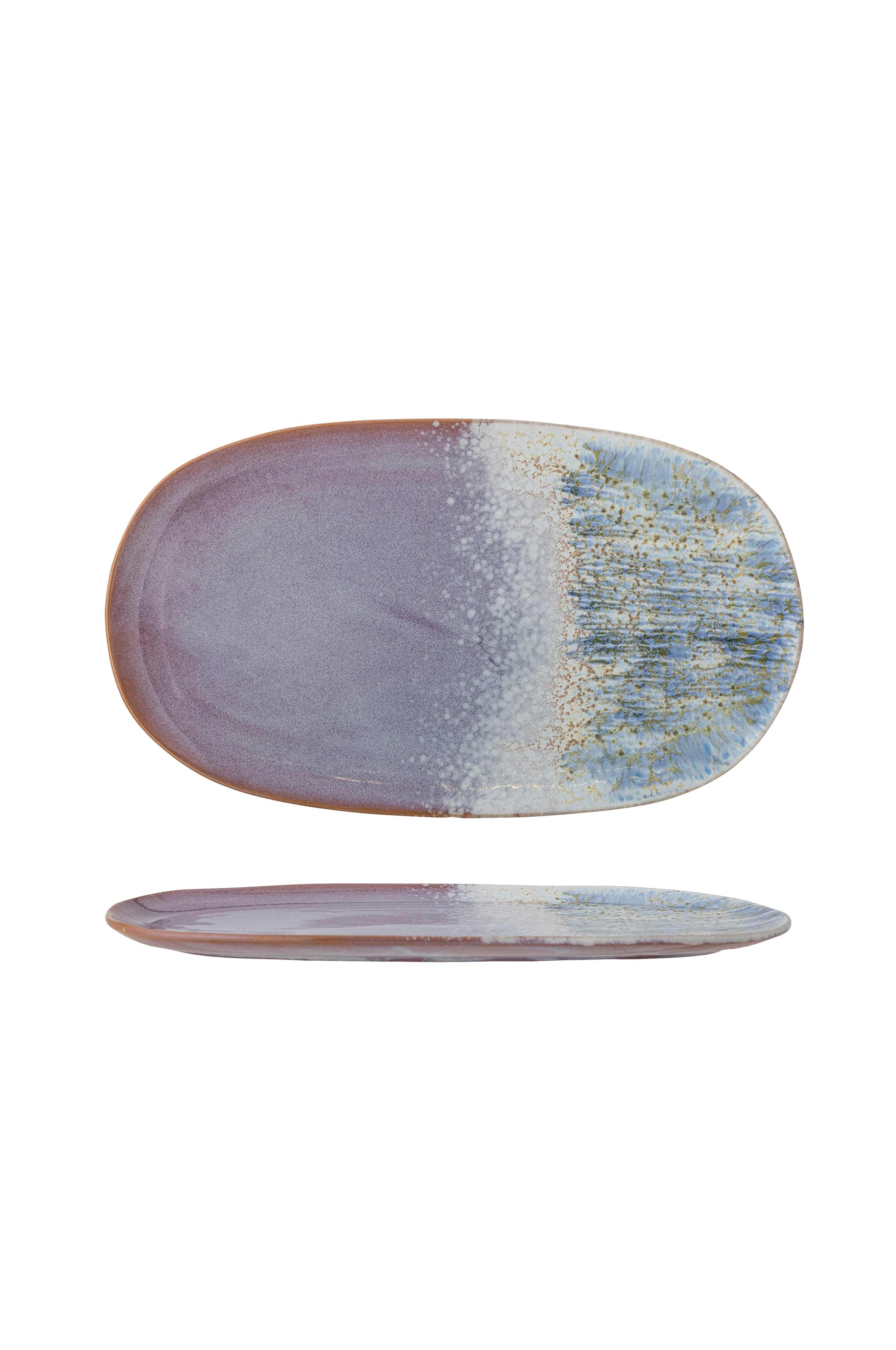 Cloe serveringsfat fra Creative Collection har en fargerik design som gir oppdekkingen en unik stil. De blå og lilla fargene smelter sammen på en vakker måte. Fordi produktet er håndlaget og har en reaktiv glasur, er hver design unik og noe forskjellig fra hverandre.