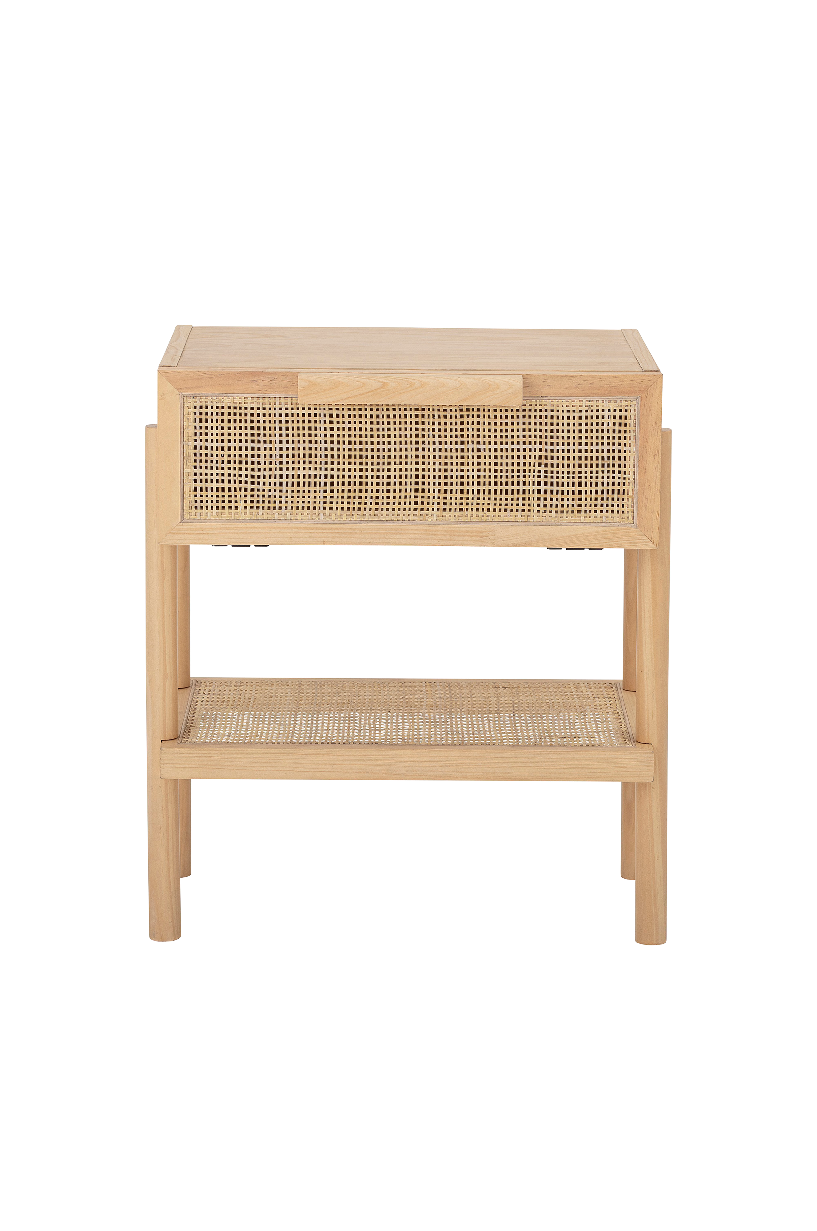 Manon sidebord fra Bloomingville er et fint bord med en praktisk skuff. Sidebordet er produsert i en kombinasjon av furu, rotting og et utvendig lag med finér. Fronten har vakre detaljer i rotting. Det er et allsidig bord som passer perfekt som nattbord.