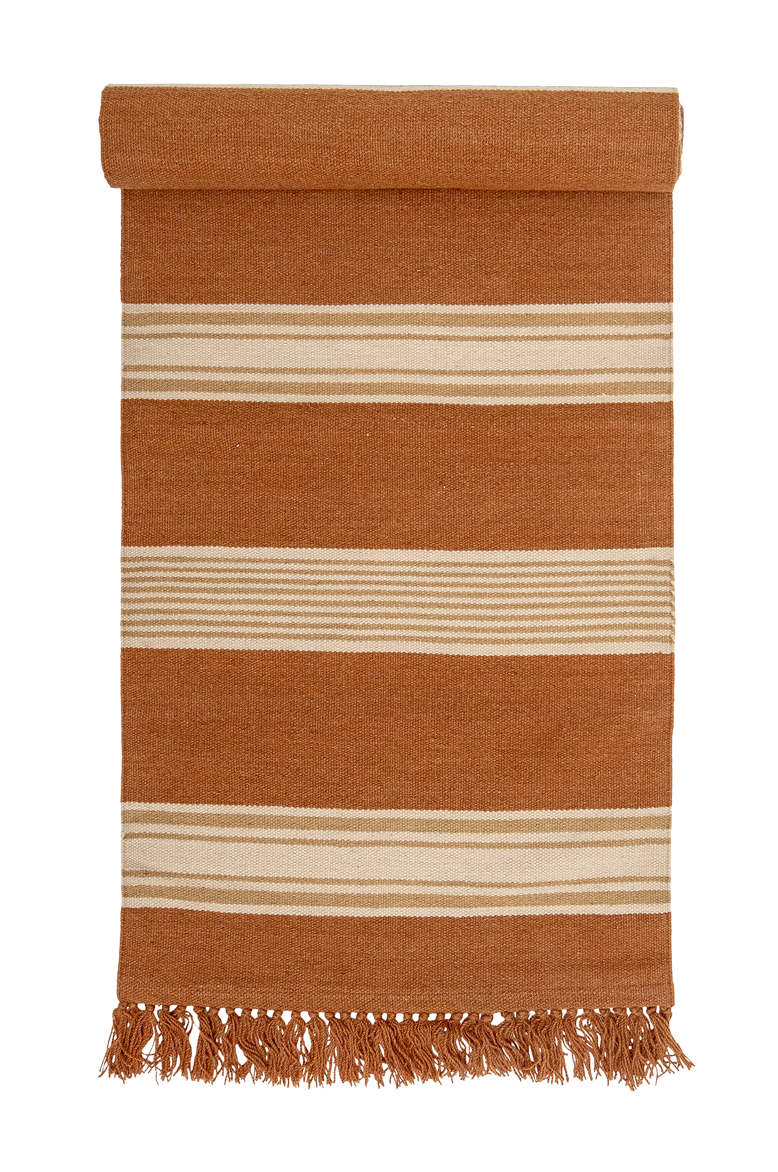 Lior teppe fra Bloomingville er et perfekt innslag i innredningen. Det er vevd av ull i en varm, brun farge med kontrastfargede striper vevde av bomull. Det lange og smale teppet er perfekt i gangen, og skaper et koselig miljø.