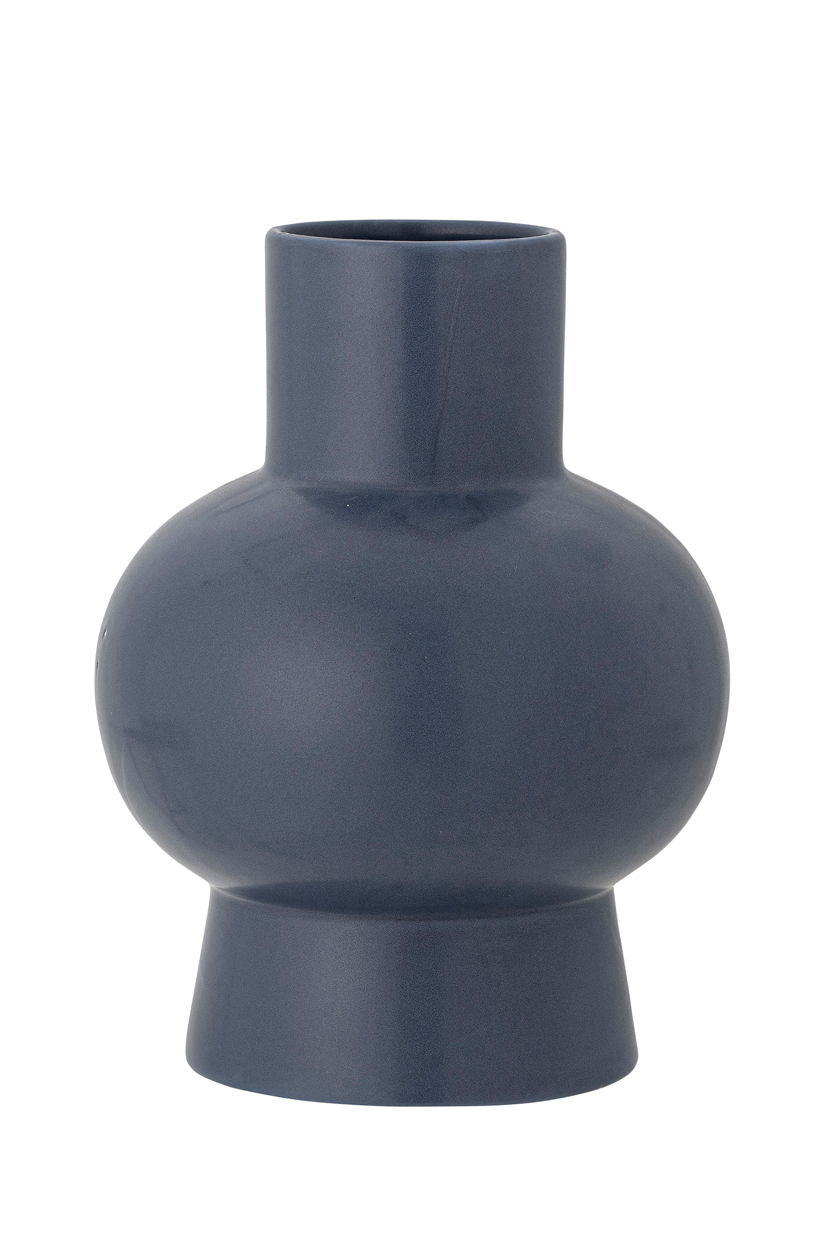 Iko vase fran Bloomingville er en enkel og elegant vase som imponerer med sin geometriske form. Den er laget av steintøy i en fin, blå farge. Denne kombinasjonen av form og materiale resulterer i en vakker vase som gir hjemmet et feminint preg.