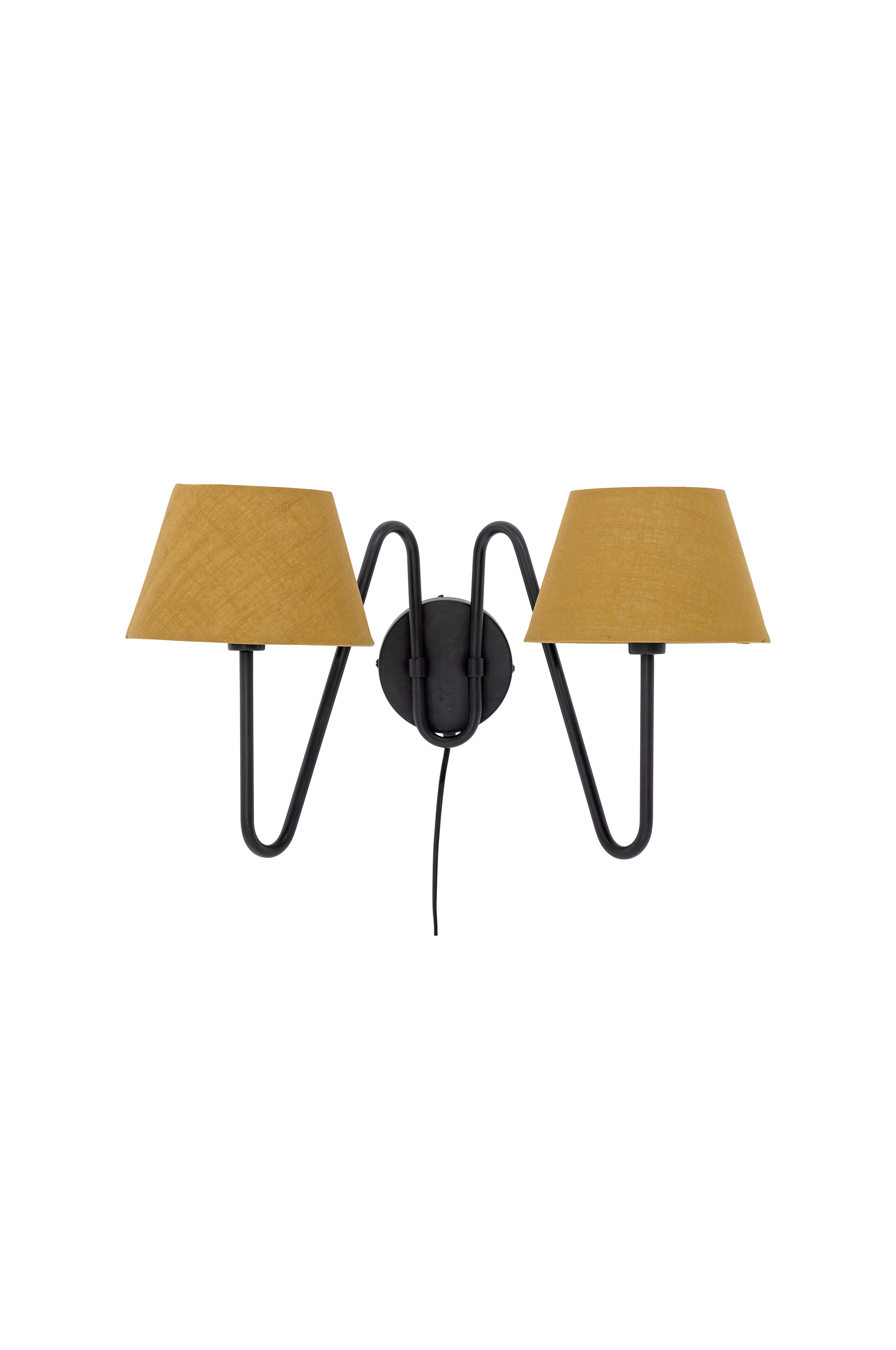 Vegglampen Letty fra Bloomingville er en vakker og elegant dobbel lampe av svart metall med lampeskjerm i en varm gul farge. Lampen gir en varm følelse, og er perfekt når du vil skape kosebelysning.