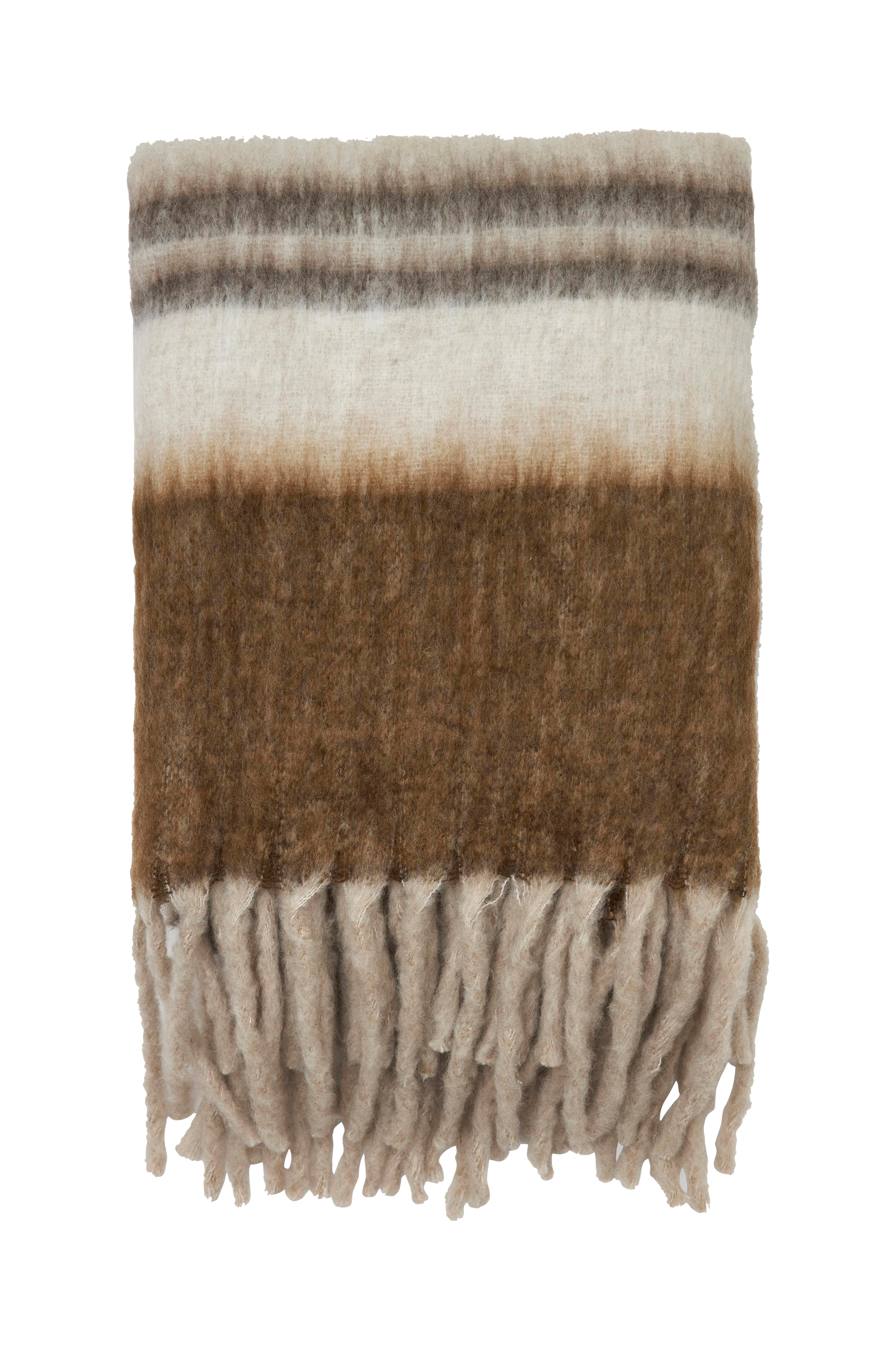 Minou er et pent og deilig pledd med beige og brune striper. Pleddet sprer varme og ro både til deg og rommet, noe som gjør det til den ultimate kosefaktoren. De dekorative frynsene tilfører det lille ekstra til pleddet og sprer trend i hjemmet.