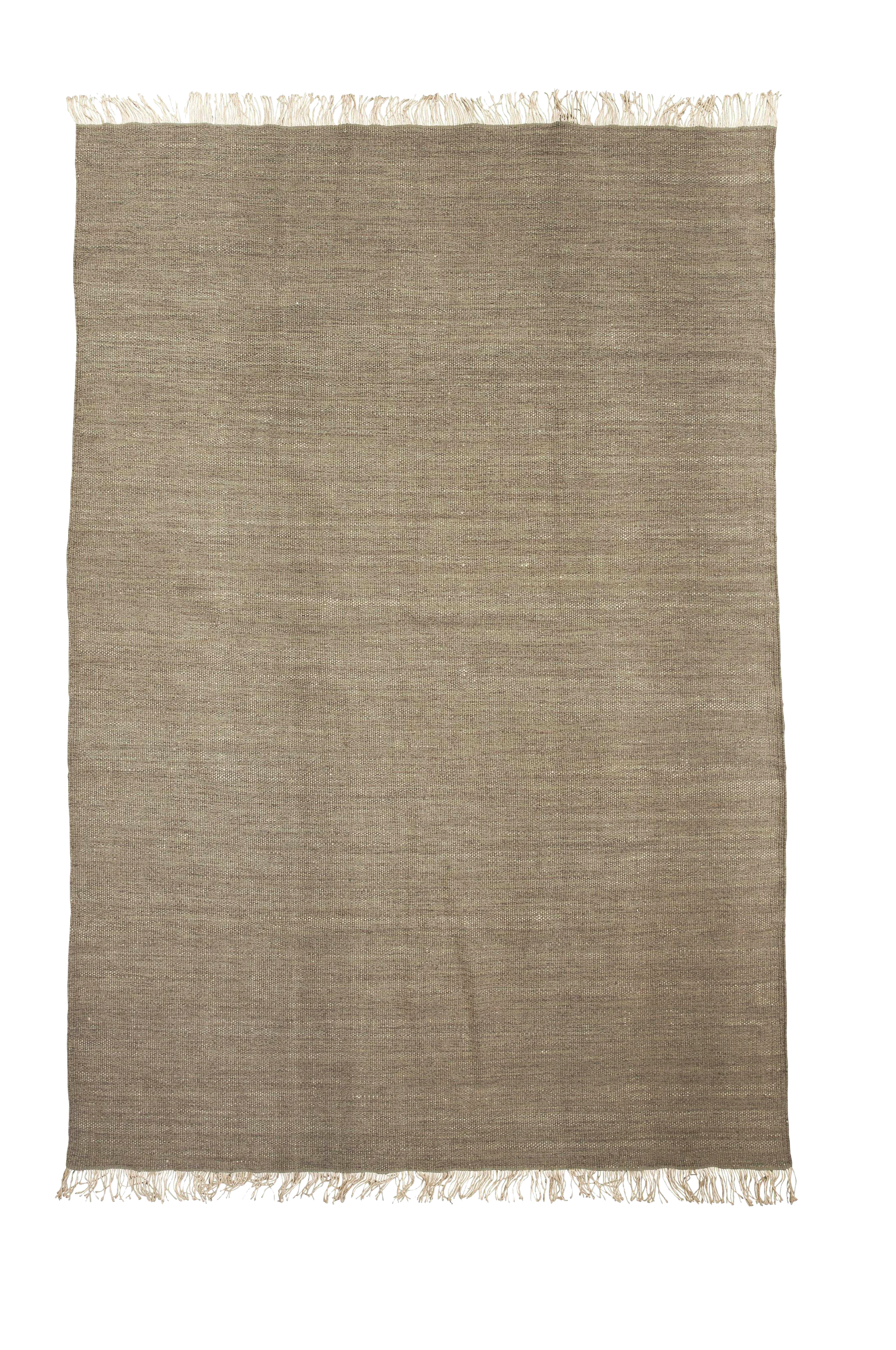 Sandvik er et litt melert teppe med frynser, i en herlig jute-, ull- og bomullsblanding
