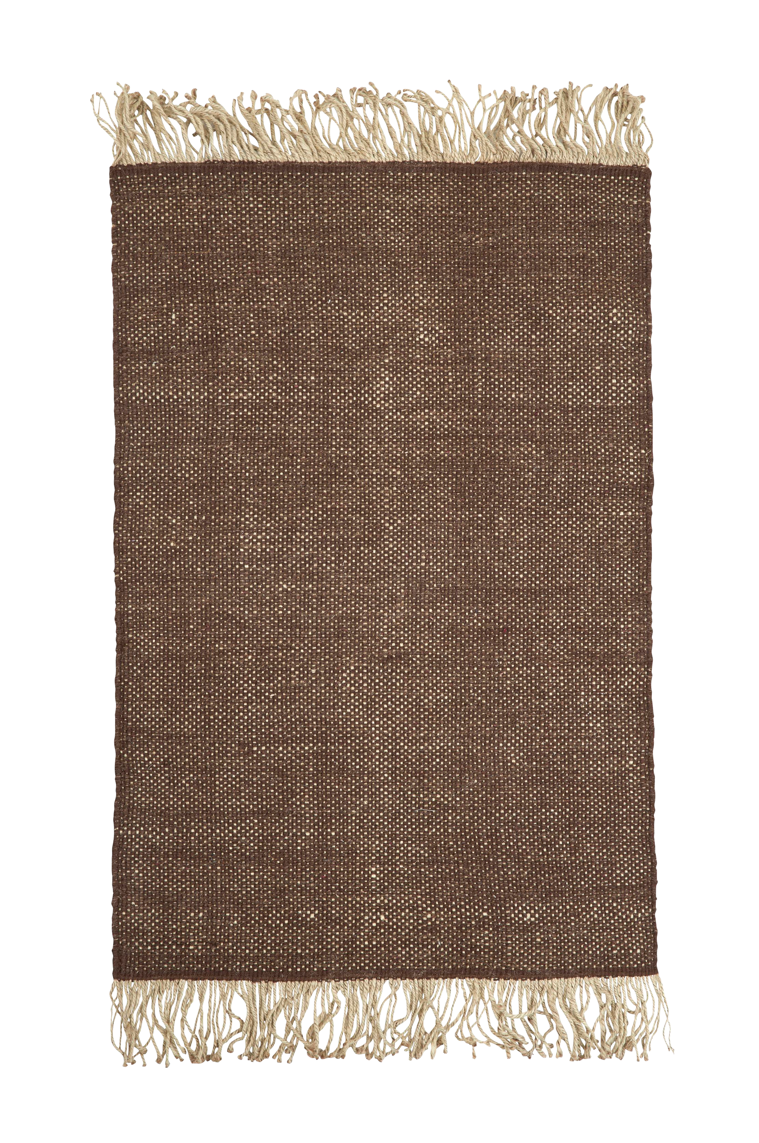 Sandvik er et litt melert teppe med frynser, i en herlig jute-, ull- og bomullsblanding