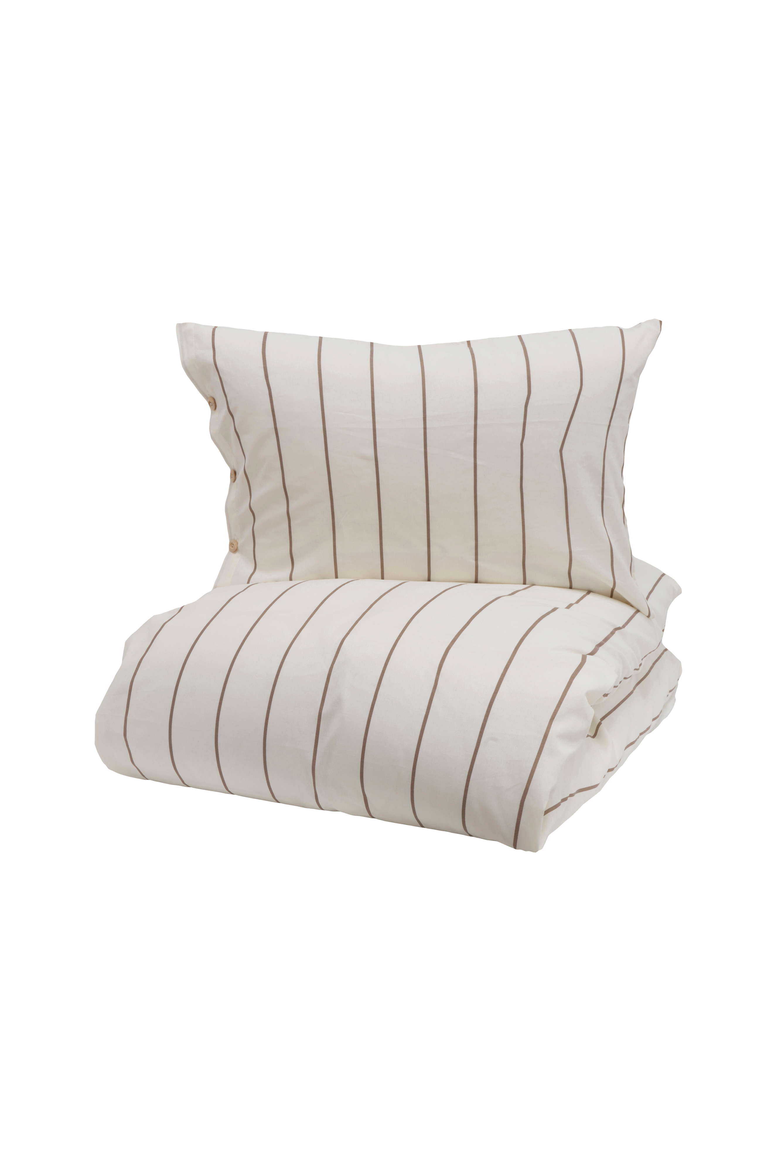 Royan sengesett er laget av 100 % bomull og har en lys beige bunnfarge med smale brune striper og praktiske knappelukking. Det minimalistiske fargevalget og de subtile stripene skaper en rolig og harmonisk atmosfære, perfekt for deg som setter pris på enkelhet og varme på soverommet. Sengesettet er laget av 100 % bomull og er oeko-tex made in green-sertifisert. Dynetrekket er designet med åpning i bunnen og treknapper, og putevaret er designet med åpning i siden og treknapper. Hvert sett inneholder 1 dynetrekk og 1 putevar. Størrelsen på sengesettet 140x200, inkluderer 1 dynetrekk og 1 putevar, 50x70 cm. Størrelsen på sengesettet 140x220, inkluderer 1 dynetrekk og 1 putevar, 50x70 cm. Sengesett 200x220, inkluderer 1 dynetrekk og 2 putevar, 50x70 cm.