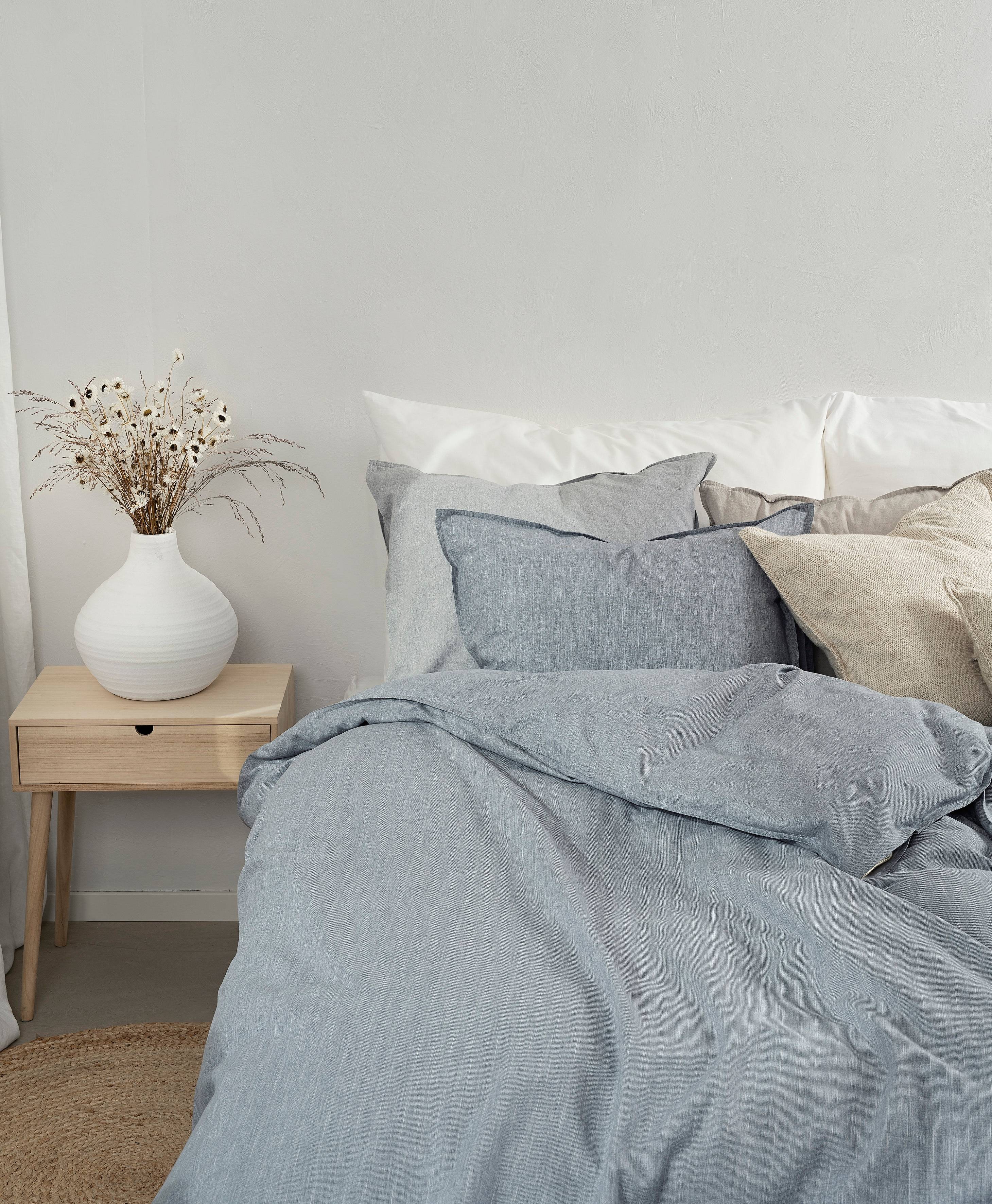 Sengesett bestående av et putevar og et dynetrekk. Sengesettet har tonålssøm, pen chambrayeffekt og er framstilt i myk og herlig bomull. Borganäs sengesett finnes i flere ulike mønstre til både enkelt- og dobbeltseng. Oeko-Tex, Made in Green. 100% bomull