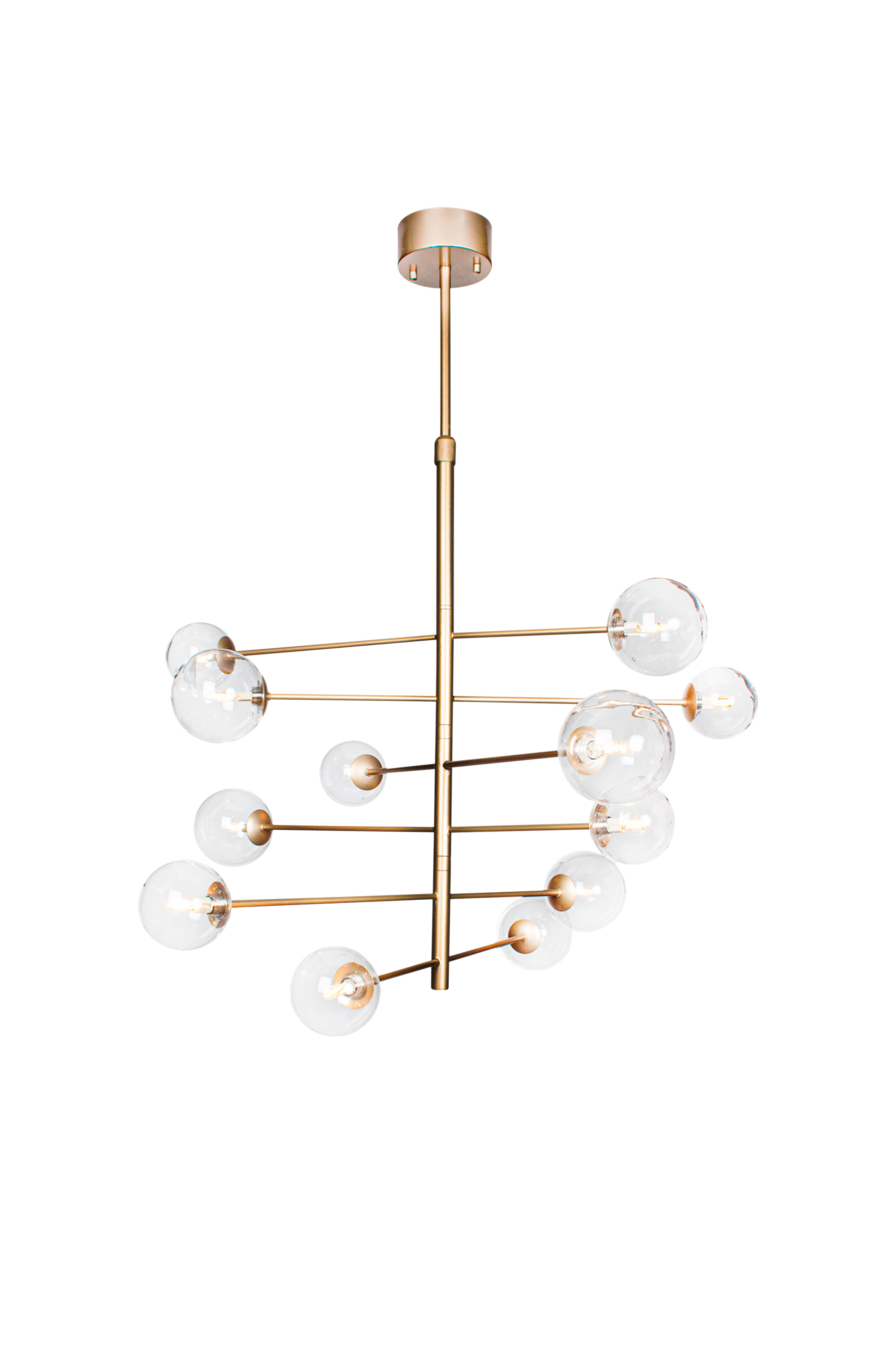 Til Avenue taklampe trenger du 12 lyskilder med sokkel G9. Høyden på taklampen er 92,5 cm (ikke heve- og senkbar), og diameteren er på det bredeste 90 cm. Diameteren på koppen ved takfestet er 12 cm. Vi anbefaler dimmer til lampen for at du skal kunne skru opp og ned lyset etter smak og anledning.