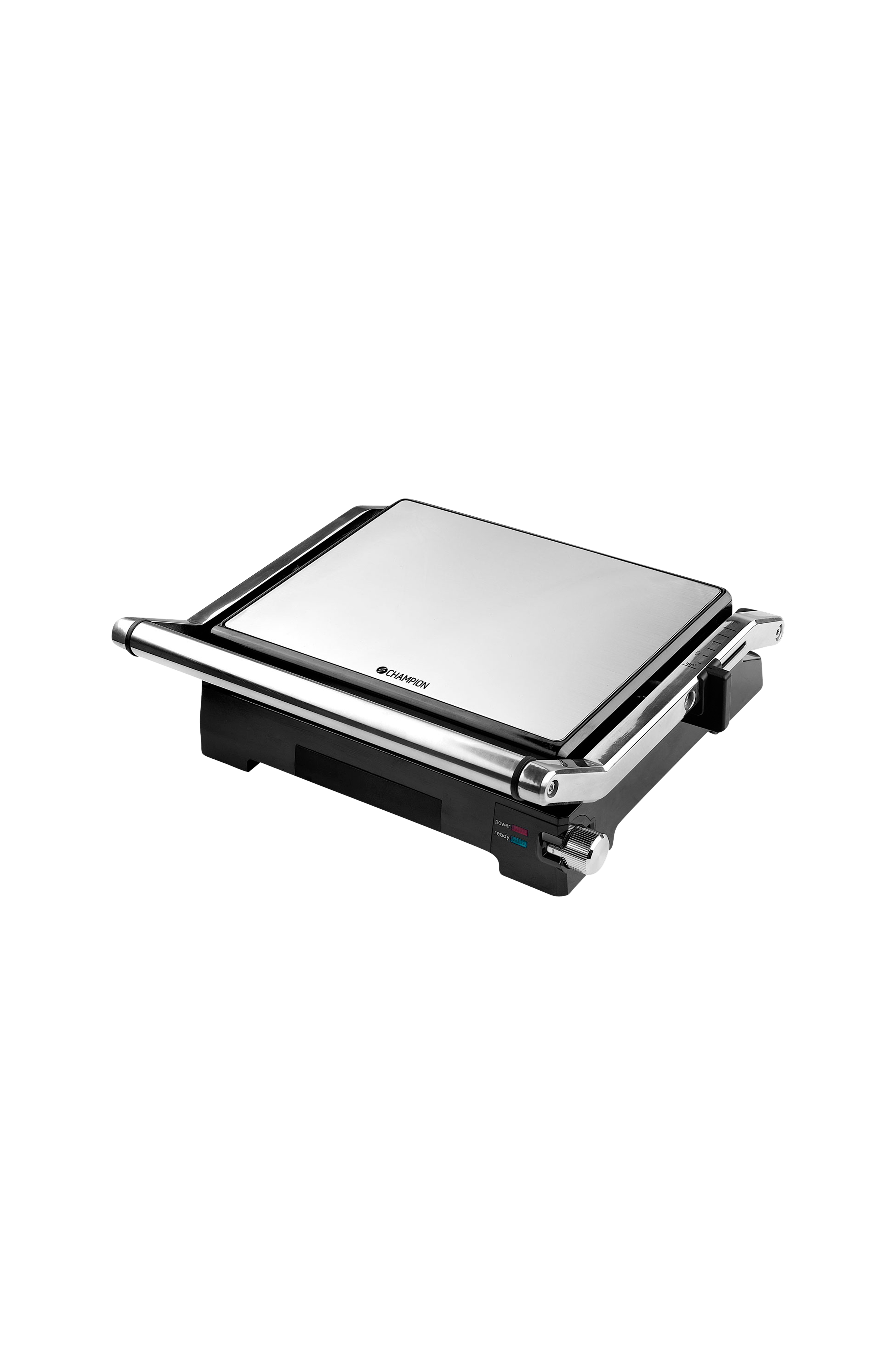 Champion CHPG300 er utstyrt med fleksible hengsler som automatisk justeres etter høyden på smørbrød eller annen mat. Paninigrillen kan åpnes 180°, noe som gjør at den kan brukes som et stort stekebord/grill. Grillen passer utmerket for paninier, store smørbrød, hamburgere, kylling etc. Det er kun fantasien som setter grenser for hva du kan lage med Champion CHPG300 panini/kontaktgrill.