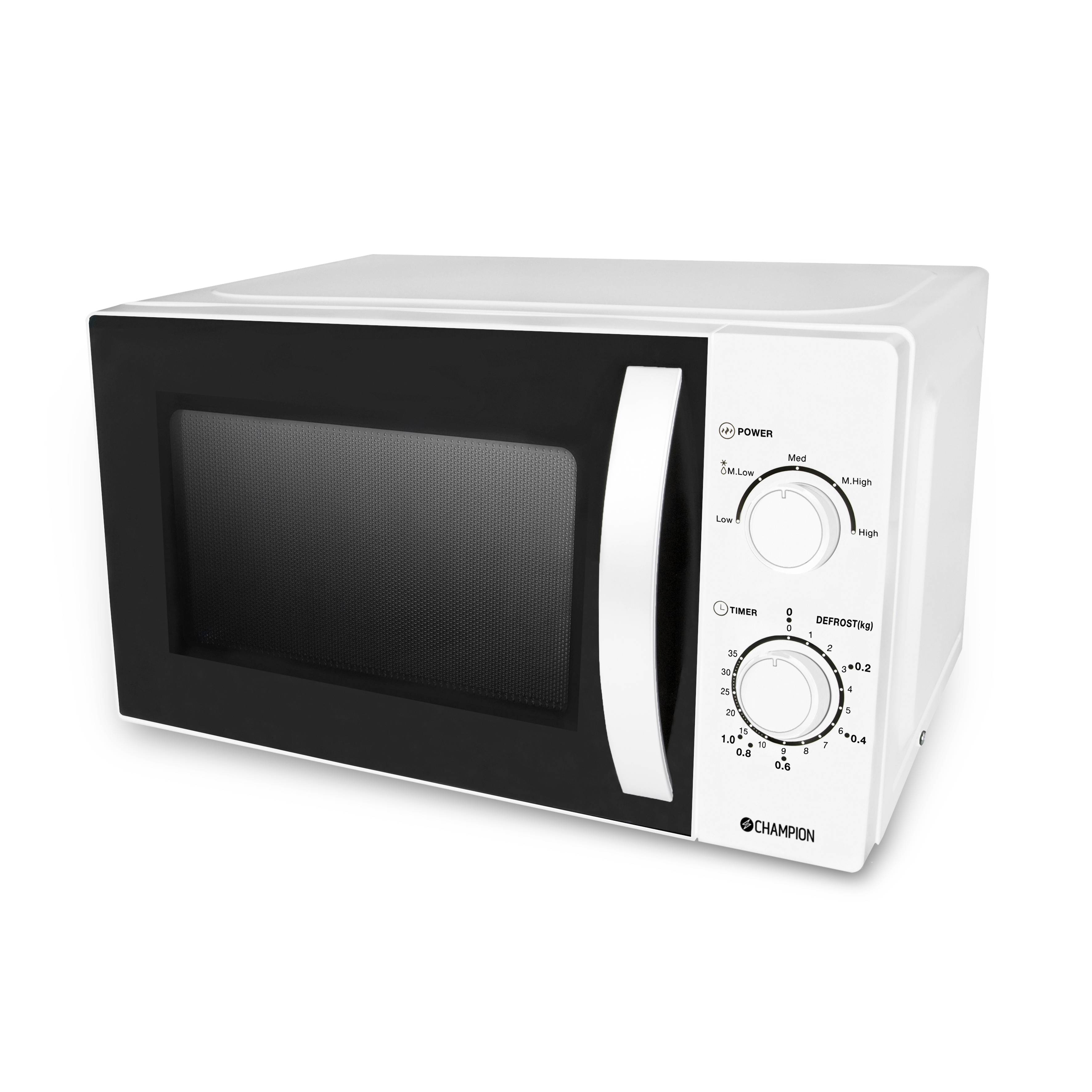 En stilren, hvit mikrobølgeovn med manuell bryter og stort håndtak. Utstyrt med alt en moderne mikrobølgeovn trenger, som opptining, roterende tallerken samt timer. Med sin romslige kapasitet på 20 liter får du plass til å varme det meste uten vanskeligheter.