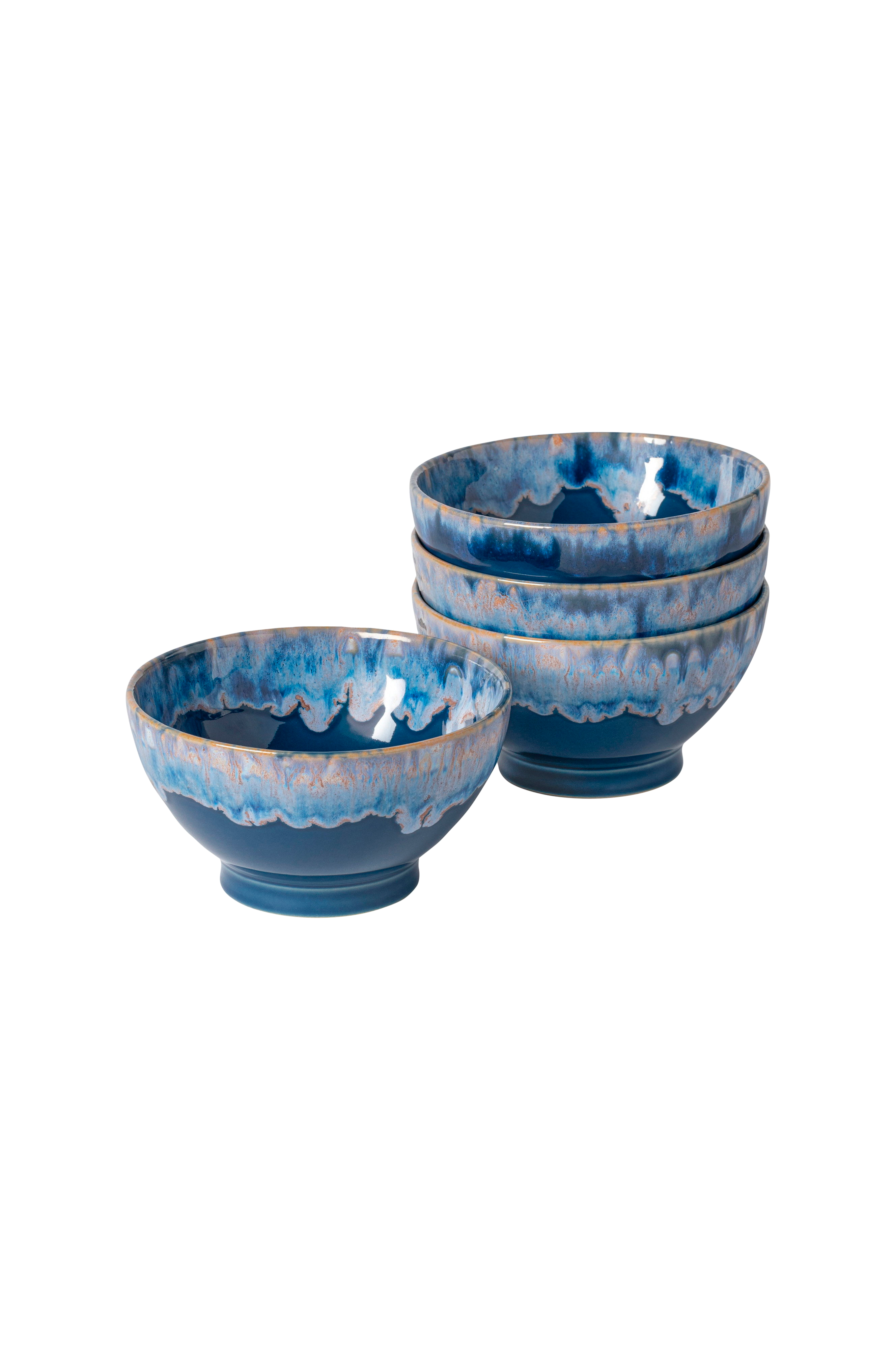 Vackert sett med 4st skålar fra portugisiska costa nova. Tillverkad av stengods med stenhård glasering i portugal. Godkendt for både diskmaskin og micro.