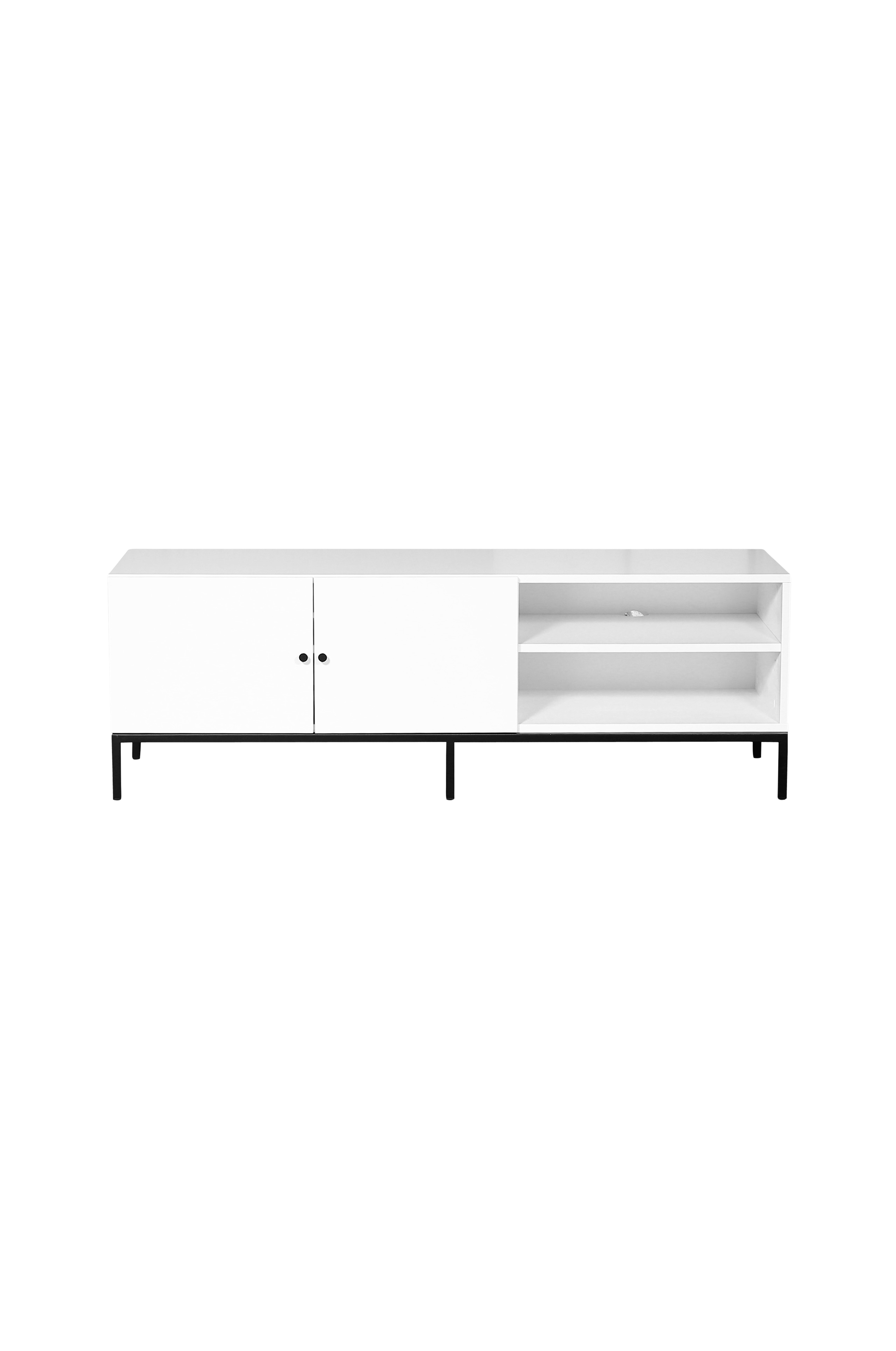 Mediabenken i brooklyn-serien gir god lagringsplass og har justerbare hyller, hver hylle har også hull i bakkant for å kunne trekke kabler mellom hyllene. Mediabenken har målene 150x50x45 cm.
