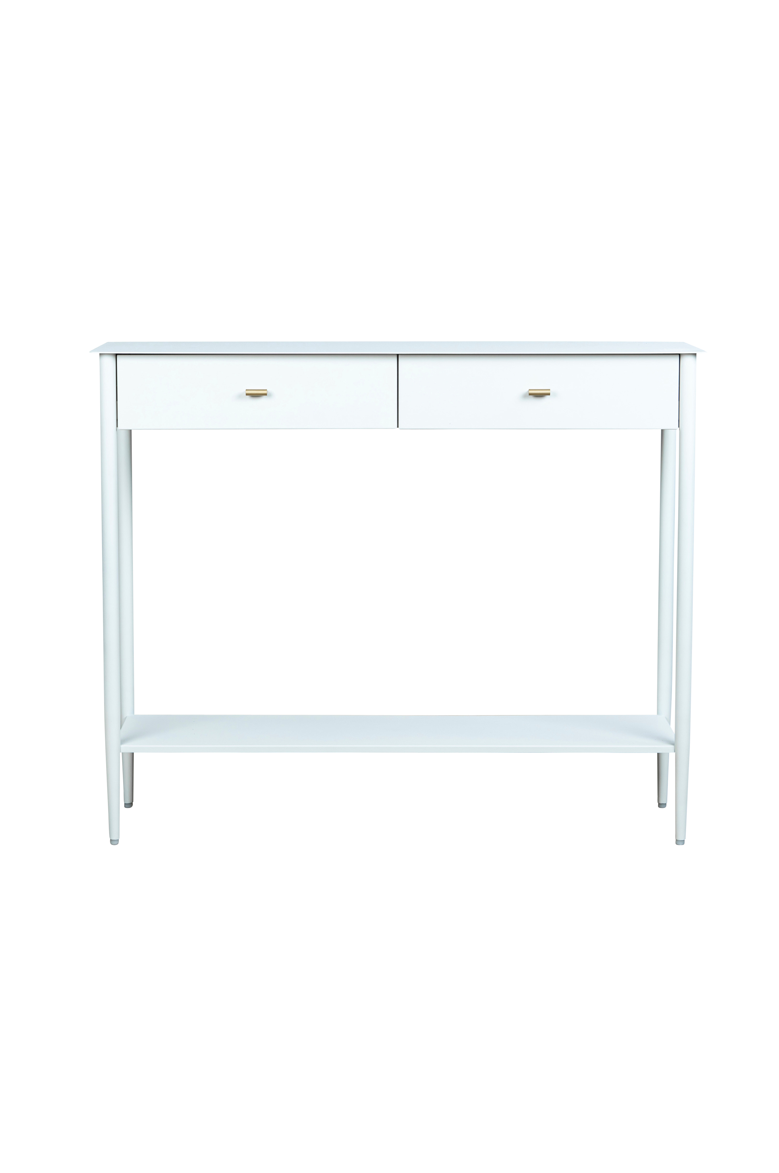 Moderne sidebord i metall med 2 skuffer med messingknott som pen detalj.