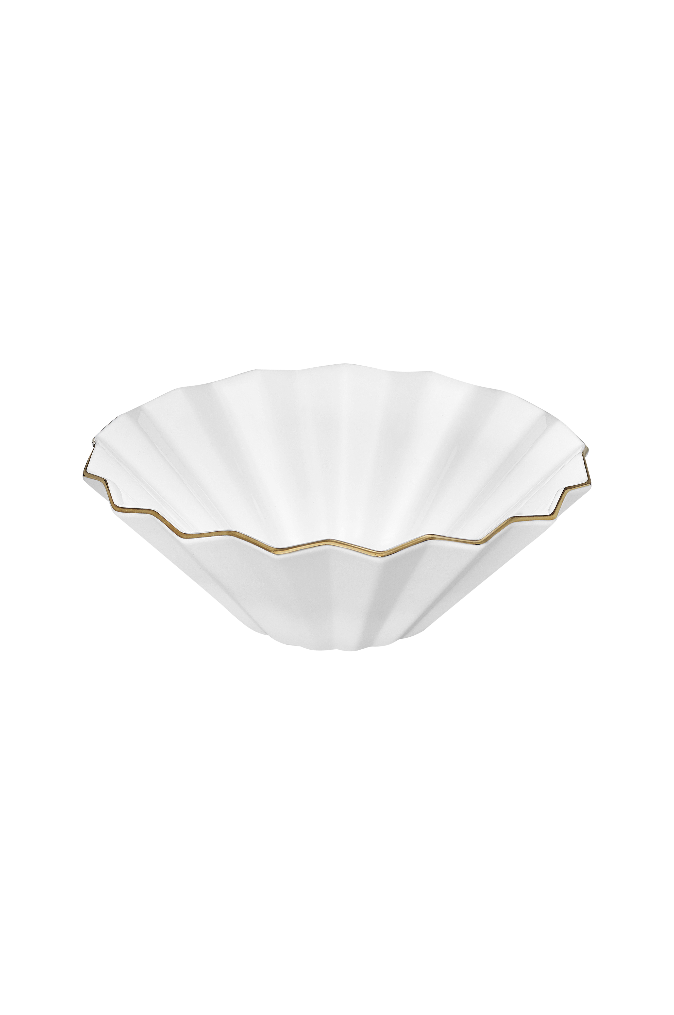 Veckade Vera skål. En moderne skål i porselensleire. Matt utside, blank innside og med en dekorativ gullkant. Designet av Marita Lord