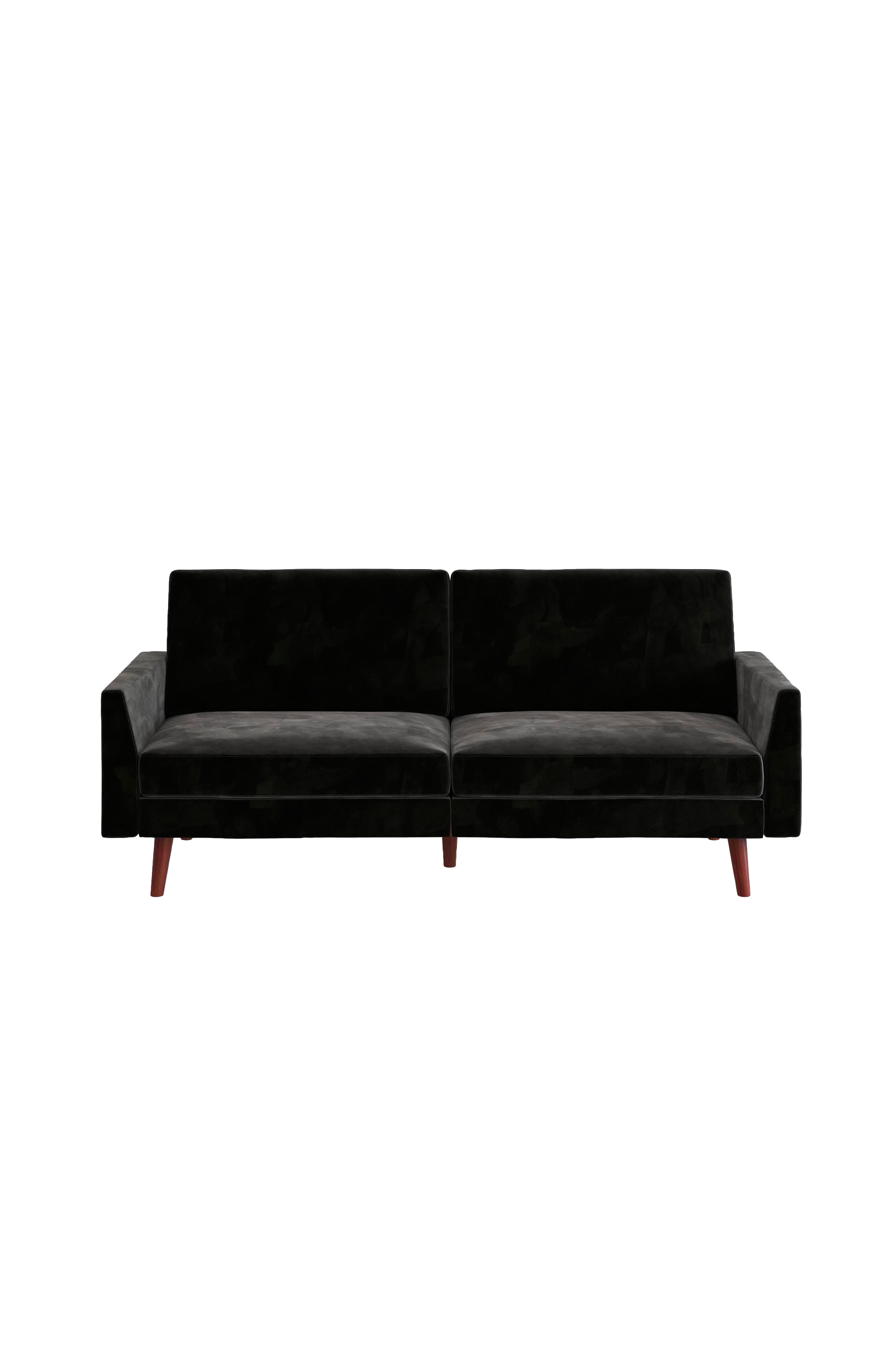 Jules sovesofa er selve definisjonen av moderne eleganse. Med mykt fløyelstrekk, smale, rette armlener og skrå ben av tre passer den inn i alle interiørstiler. Stamme er laget av heltre for å garantere høy holdbarhet og stabilitet, mens sitteputene med pocketfjæring gir høyeste komfort. Jules sovesofa har en allsidig design, og er perfekt i små stuer. Det delte ryggstøet kan justeres uavhengig av hverandre til hvile- og sovestilling slik at sofaen kan brukes til overnattingsgjester. Denne kompakte sofaen kommer i flere farger, leveres i en letthåndterlig emballasje og er lett å montere.