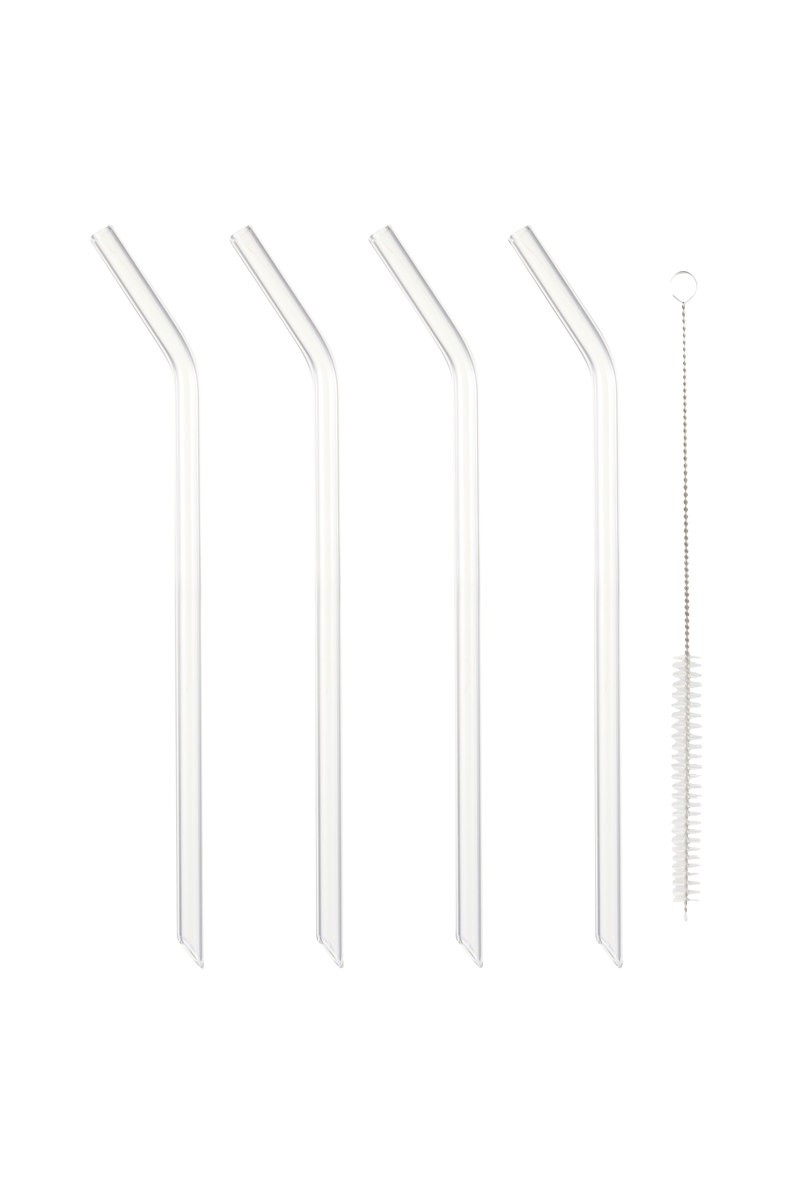 Dora drinkpinne sugerør med bøy, klart glass, 4-pk, lengde 21 cm