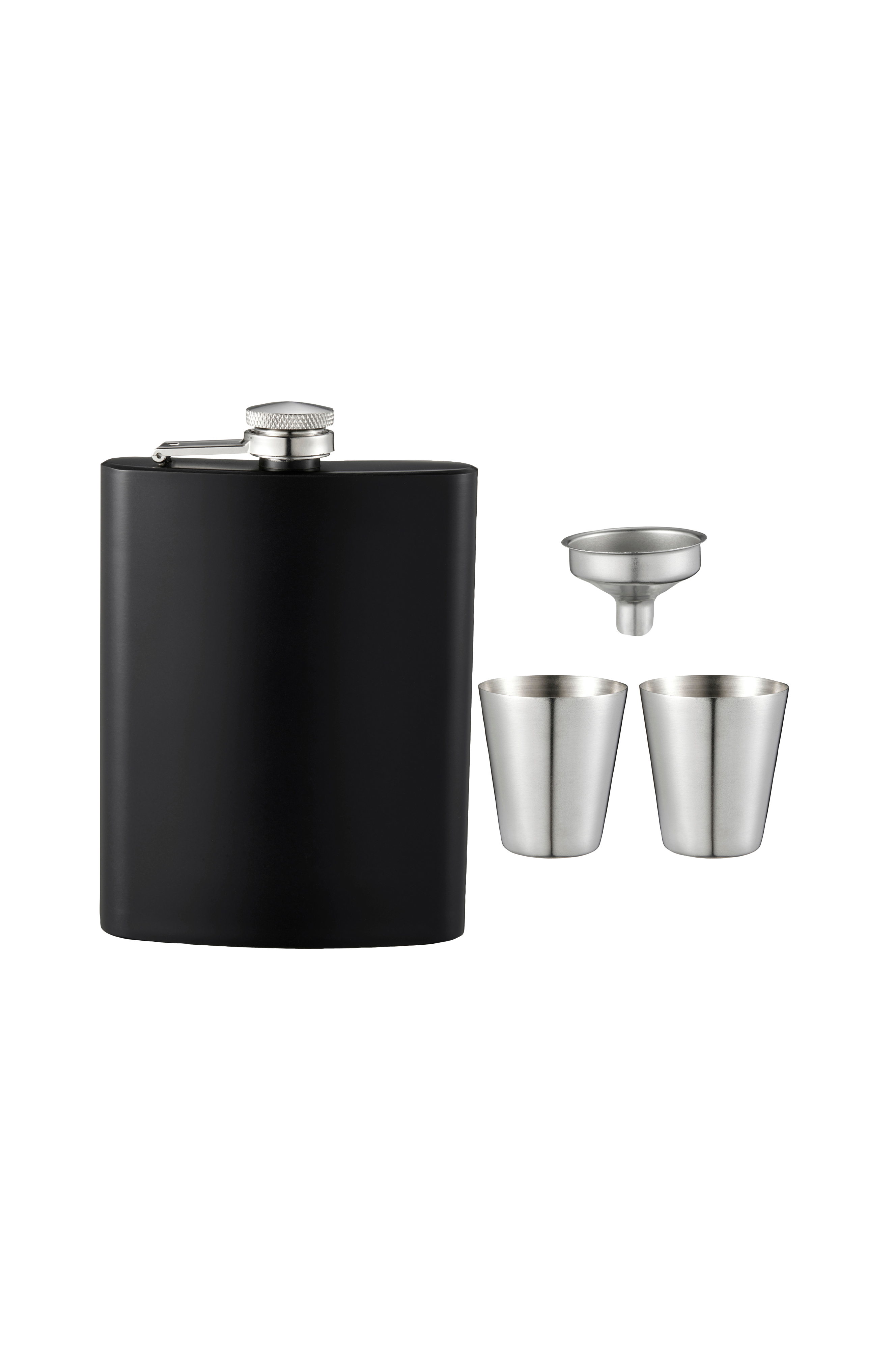 Lommekolbe 2,3 dl 2 shotglass trakt i rustfritt stål