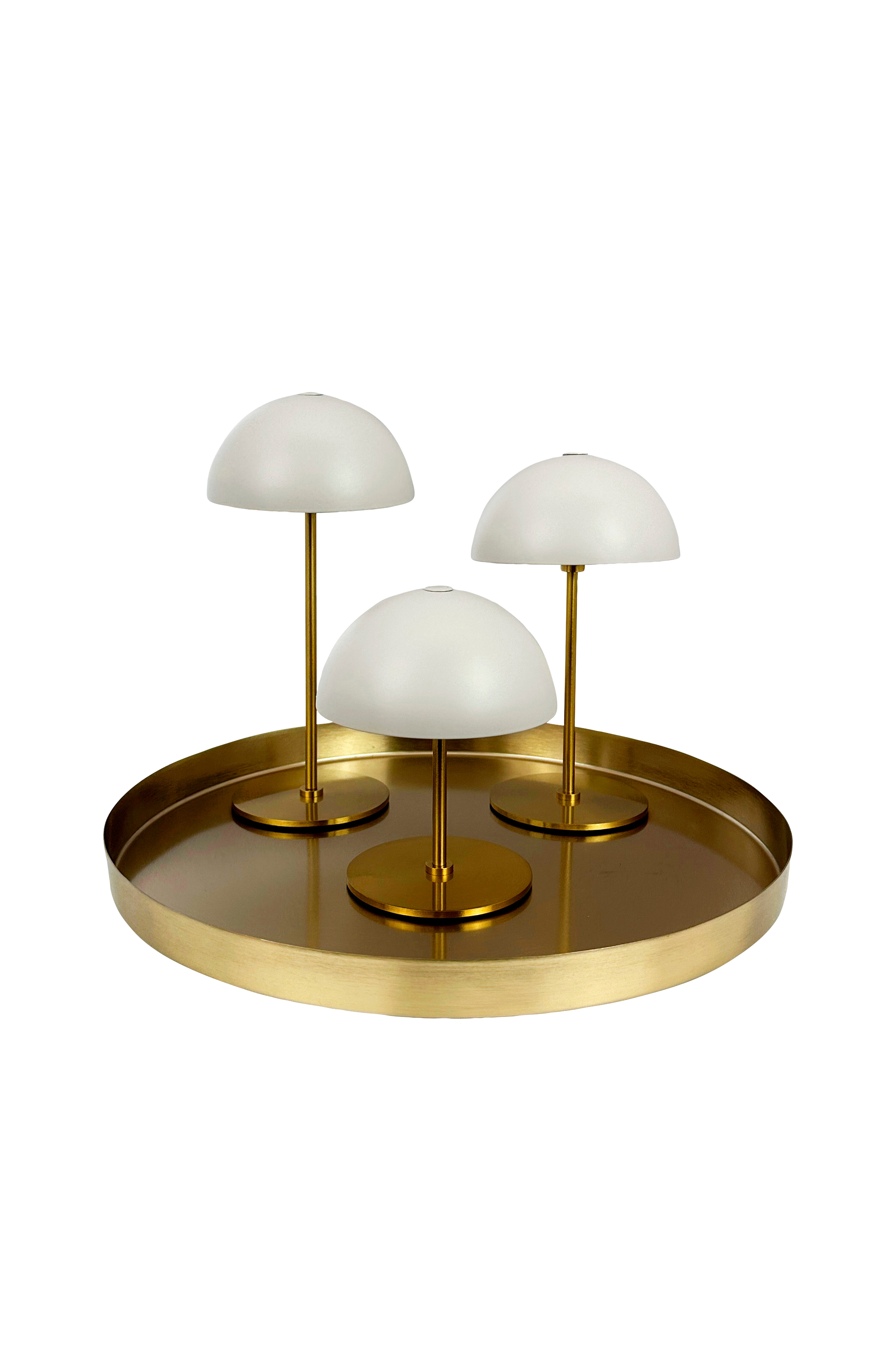 Når lampene plasseres på det medfølgende messingbrettet, skaper de et elegant midtpunkt som tilfører varme og stil uansett hvor du plasserer dem.