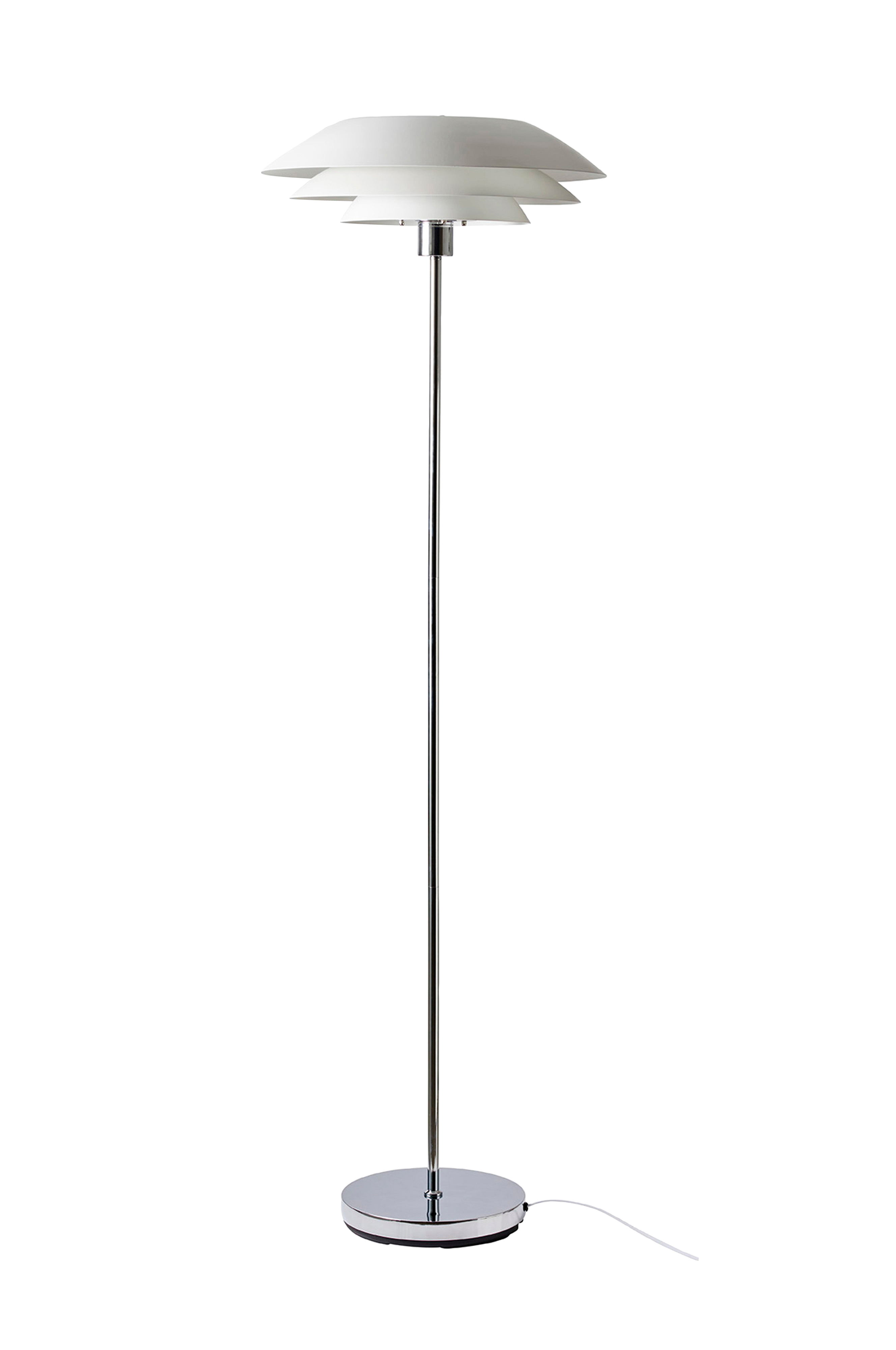 Vakker gulvlampe i klassisk design med enkle og rene linjer fra dyberglarsen. Gulvlampen dl45 er en stor, vakker lampe som lyser opp der den plasseres. Passer perfekt som leselampe med en høyde på 146 cm. Lyset ledes mykt gjennom tre lagdelte skjermer i varierende størrelser, noe som skaper en varm og innbydende atmosfære uten å blende. Takket være den gjennomtenkte plasseringen av lampeskjermene gir lampen funksjonell belysning samtidig som den gir et koselig og blendfritt lys. Designet er typisk skandinavisk og tidløst, og passer inn i alle typer hjem.
