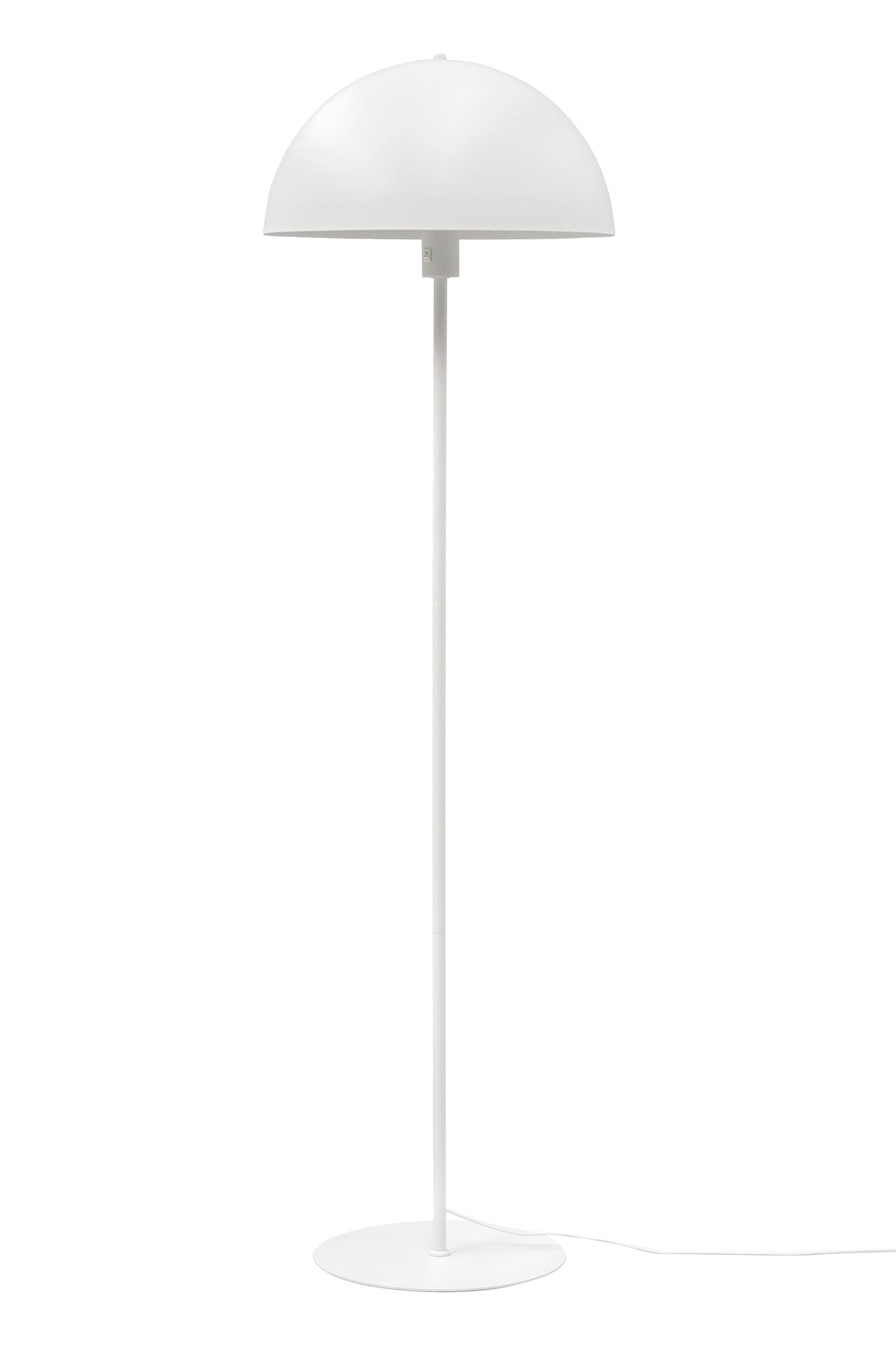 Stockholm gulvlampe matt hvit metall. Har av/på-funksjon på lampens stikkontakt. Leveres med 1,6 m hvit stoffledning.
