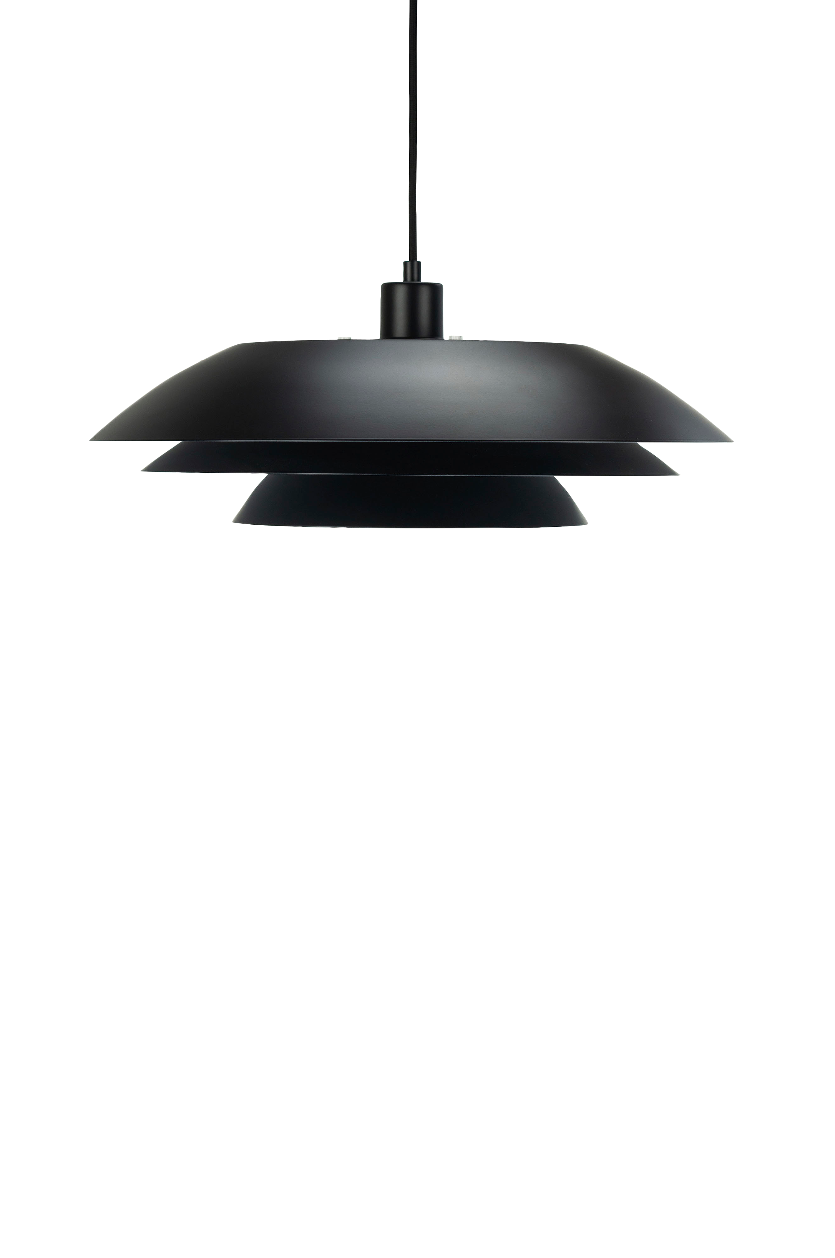 Seriens lamper kombinerer det myke med det skarpe i uttrykket takket være de skarpe og rene linjene, som harmonerer vakkert med alle stiler og lar et ikonisk element skinne vakkert lys. Lyset ledes mykt gjennom tre lagdelte skjermer i varierende størrelser, noe som skaper en varm og innbydende atmosfære uten å blende. Takket være den gjennomtenkte plasseringen av lampeskjermene gir lampen funksjonell belysning samtidig som den gir et koselig og blendingsfritt lys. Pendelen leveres med en 3 meter lang stoffledning.