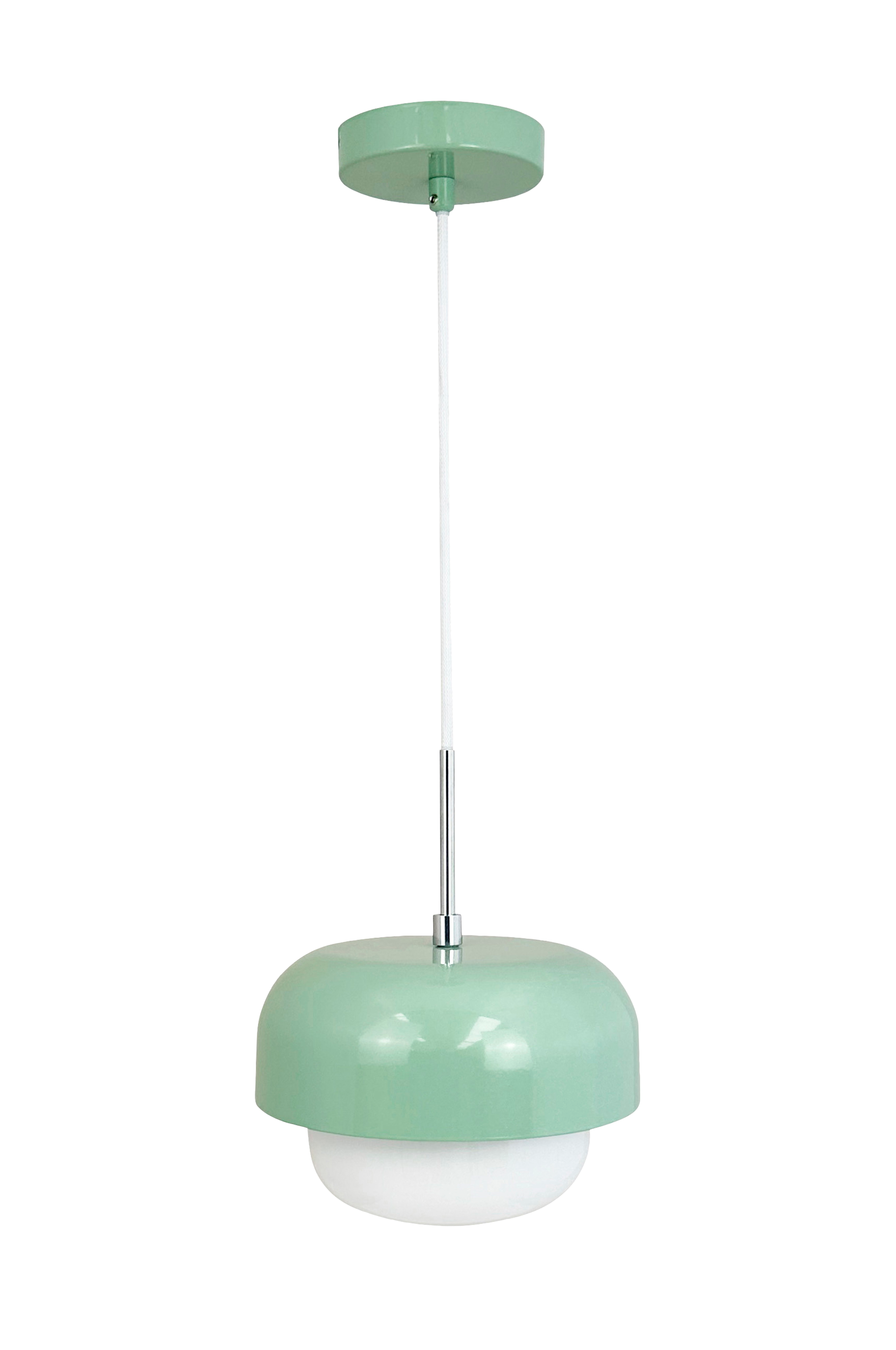 Haipot-lampen består av den vakreste lampeskjerm i opalglass, samt en farget metallskjerm og en porselensfatning. Lampen sprer et godt og varmt lys uansett hvor du velger å plassere den.