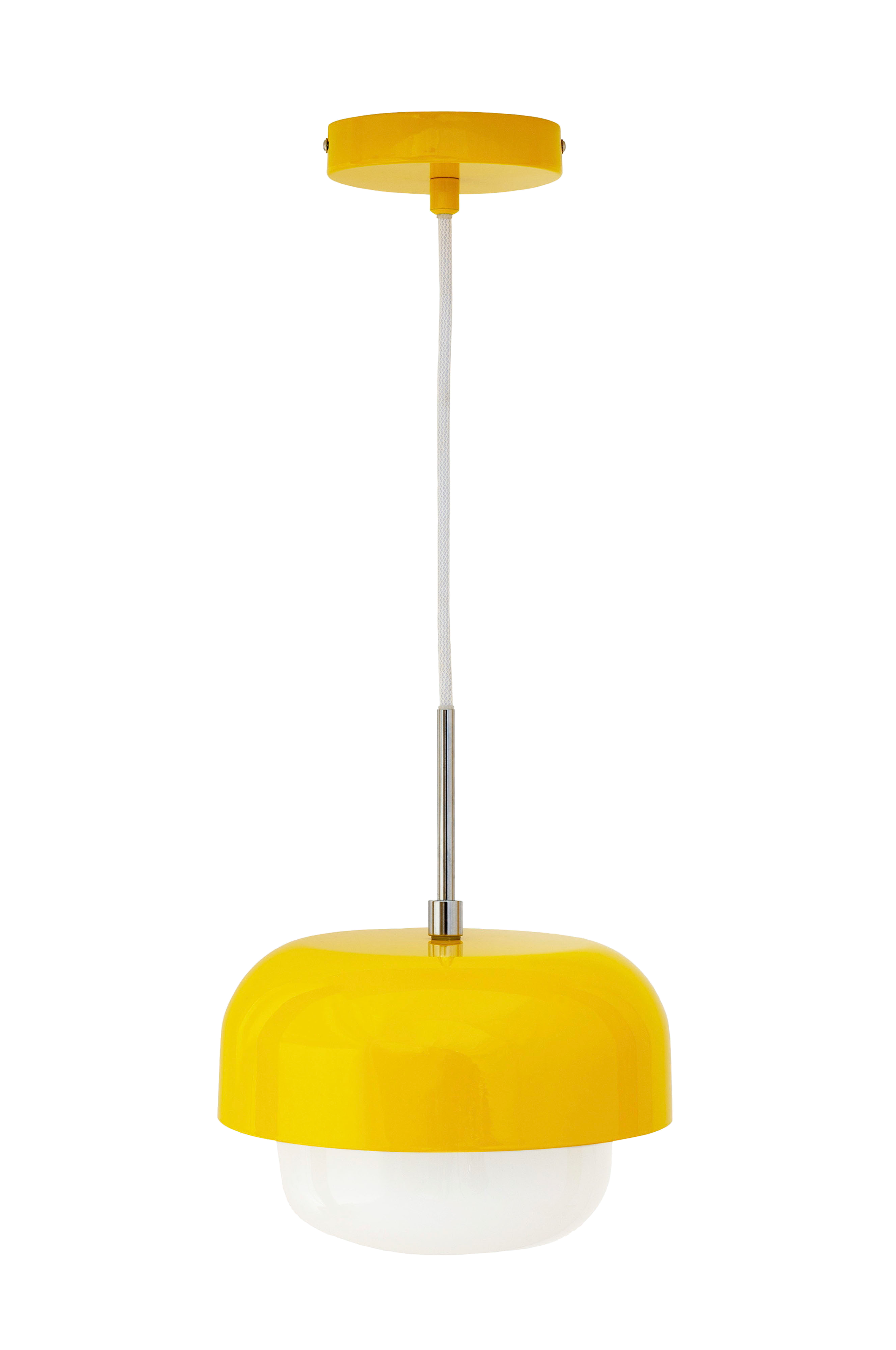 Haipot-lampen består av den vakreste lampeskjerm i opalglass, samt en farget metallskjerm og en porselensfatning. Lampen sprer et godt og varmt lys uansett hvor du velger å plassere den.