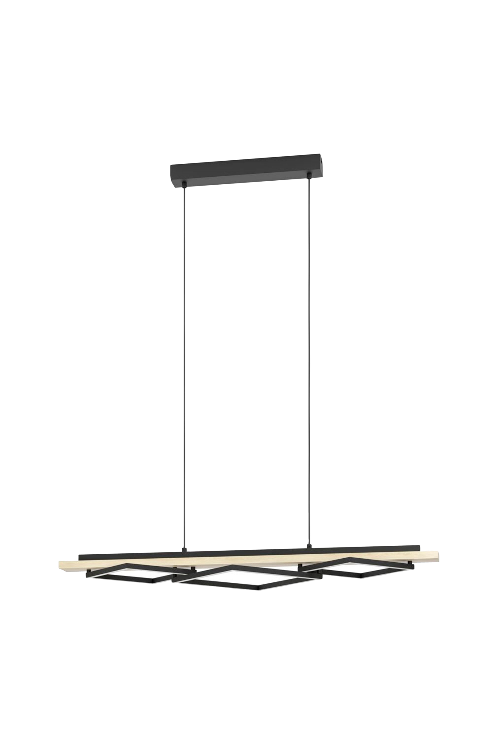 Med boyal pendellampe får du et moderne blikkfang inn i hjemmet ditt. Lampen kombinerer en elegant, svart metallprofil med et element av lyst tre som gir varme og naturlighet. De firkantede led-rammene i svart skaper geometriske aksenter og sørger for jevn, blendingsfri belysning. Kombinasjonen av klare linjer og naturlige materialer gjør at lampen passer inn i både moderne og skandinavisk inspirerte boligkonsepter. Den er perfekt til bruk over langstrakte spisebord eller kjøkkenøyer. Lyskilden er fastmontert og gir et behagelig, varmt hvitt lys.