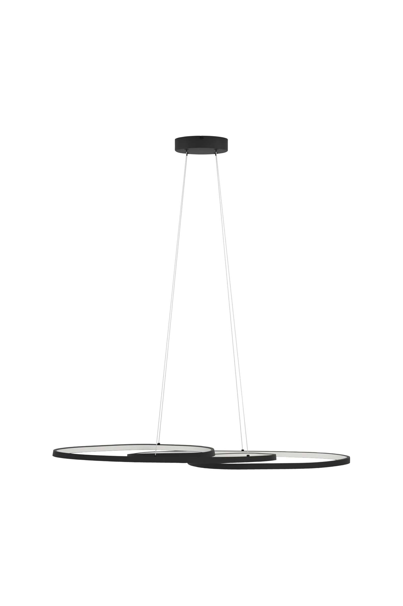 gianella led-pendellampen har en moderne design med en struktur av stål og aluminium i en black -finish med white plastdiffusorer. Lysdiffusorene er ordnet i en virvlende form, som er hengt opp fra en avrundet baldakin. De integrerte lysdiodene gir et behagelig varmt white lys under plastdiffusorene. Pendellampen passer til moderne interiør og gir stilfull belysning i alle rom, enten det er i stuen eller over spisebordet.