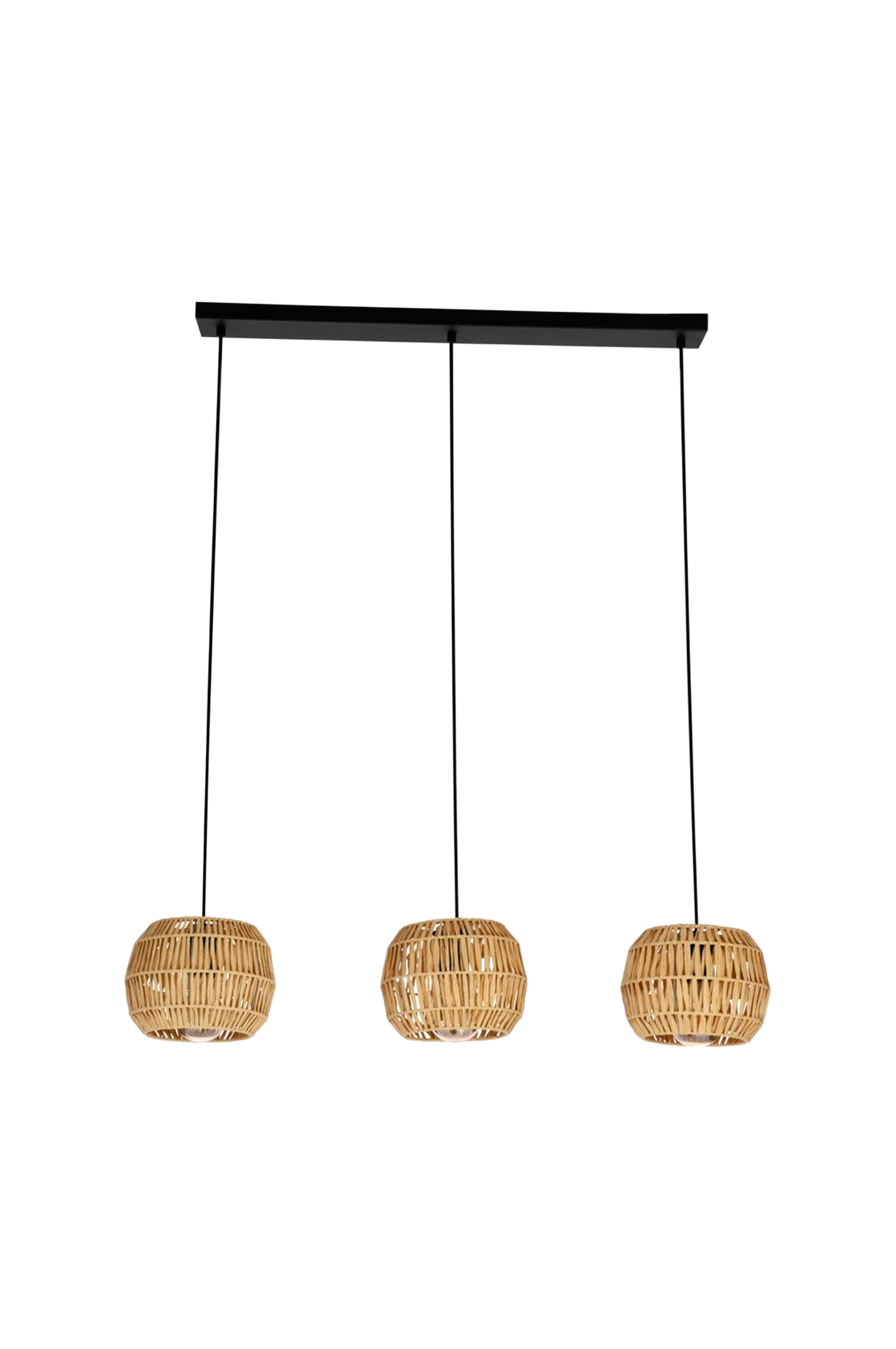 Med sin naturlige utstråling tilfører sheldon pendellampen varme og letthet til oppholdsrommene dine. De tre kuleformede lampeskjermene i naturfarget tauvev er kunstferdig håndlaget og henger i fine, svarte kabler som er festet til en diskret baldakinstang. Den åpne strukturen skaper et stemningsfullt lysspill, som er spesielt effektfullt over lange spisebord eller kjøkkenøyer. Designet kombinerer moderne tilbakeholdenhet med håndverksmessig sjarm og passer perfekt til interiørstiler som boho, scandi eller urban jungel. Lampen er utstyrt med tre e27-fatninger, noe som gir deg frihet til å velge pærer - for akkurat den lyseffekten du trenger.
