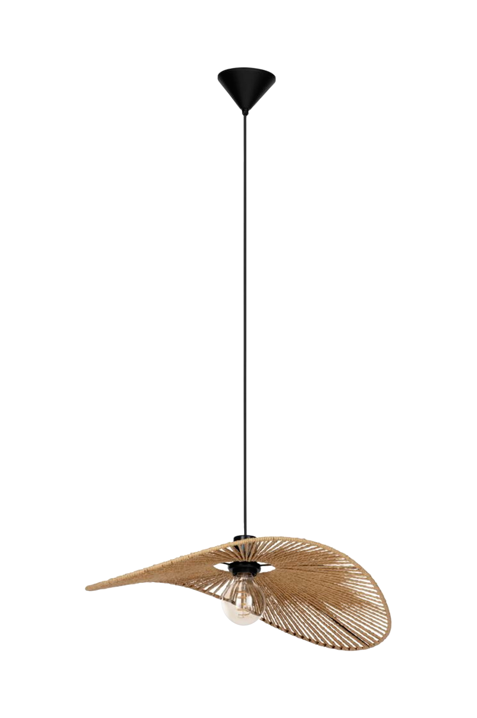 Denne siruela hengelampen er laget av svart stål og en oval lampeskjerm av naturtau. Lampen krever en e27-lyskilde for å lyse og måler 56 cm i lengden, 40 cm i bredden og har en justerbar høyde på 110 cm.