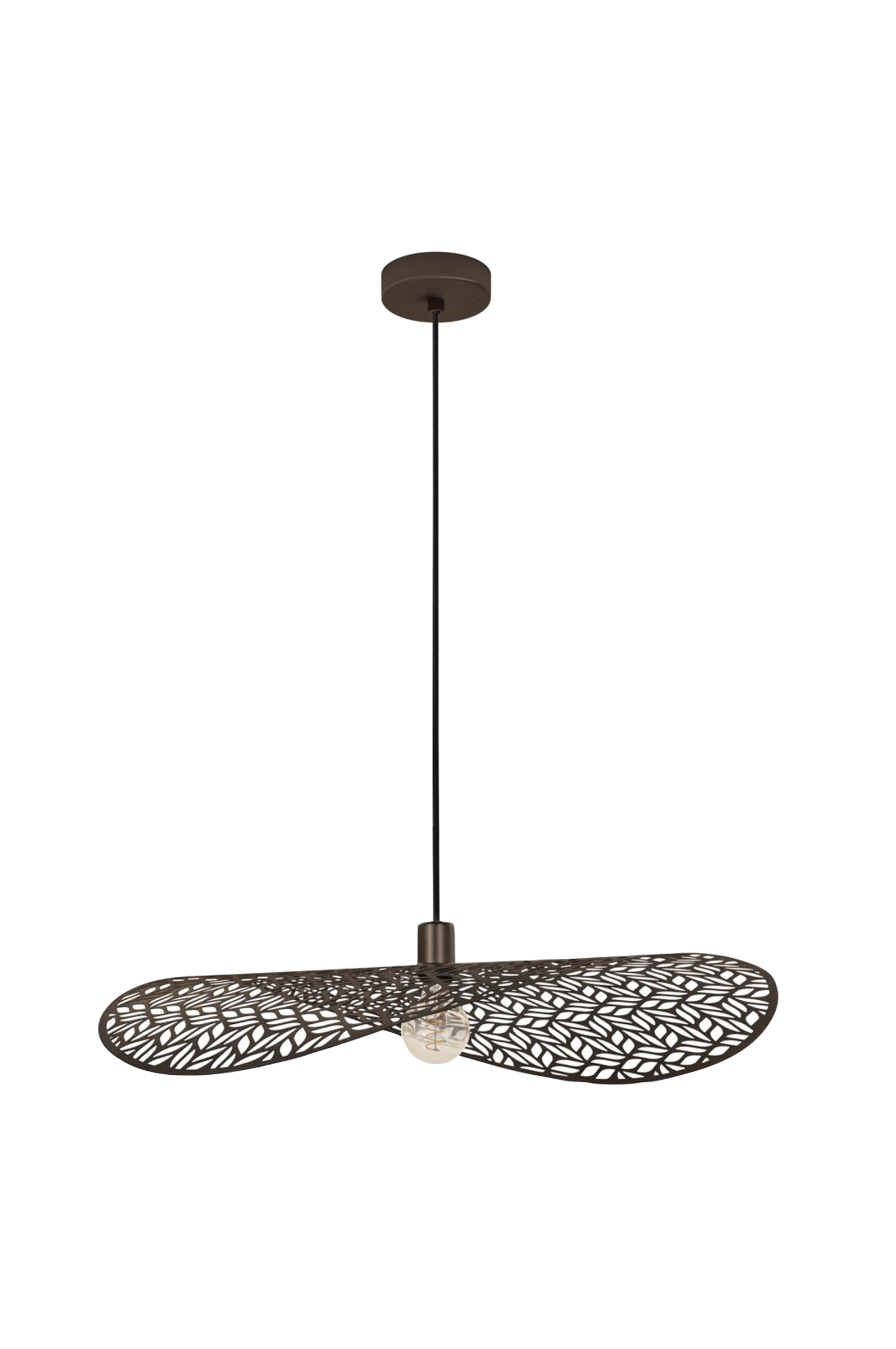 Pendellampen swaby tilfører kunstnerisk letthet og varm eleganse til hjemmet ditt. Den store, flate metallskjermen i børstet bronze har et delikat utskåret bladmønster som skaper fascinerende lys- og skyggeeffekter på vegger og tak når den er slått på. Skjermens myke form ligner en organisk skulptur, noe som gir lampen et spesielt estetisk preg. Den er ideell over for eksempel et spisebord eller som blikkfang i stuen. Den åpne designen gir fri sikt til pæren, noe som gjør at dekorative glødelamper kommer perfekt til sin rett. Lampen er egnet for e27-pærer, som ikke er inkludert. En fargekoordinert baldakin fullfører designet på en harmonisk måte.