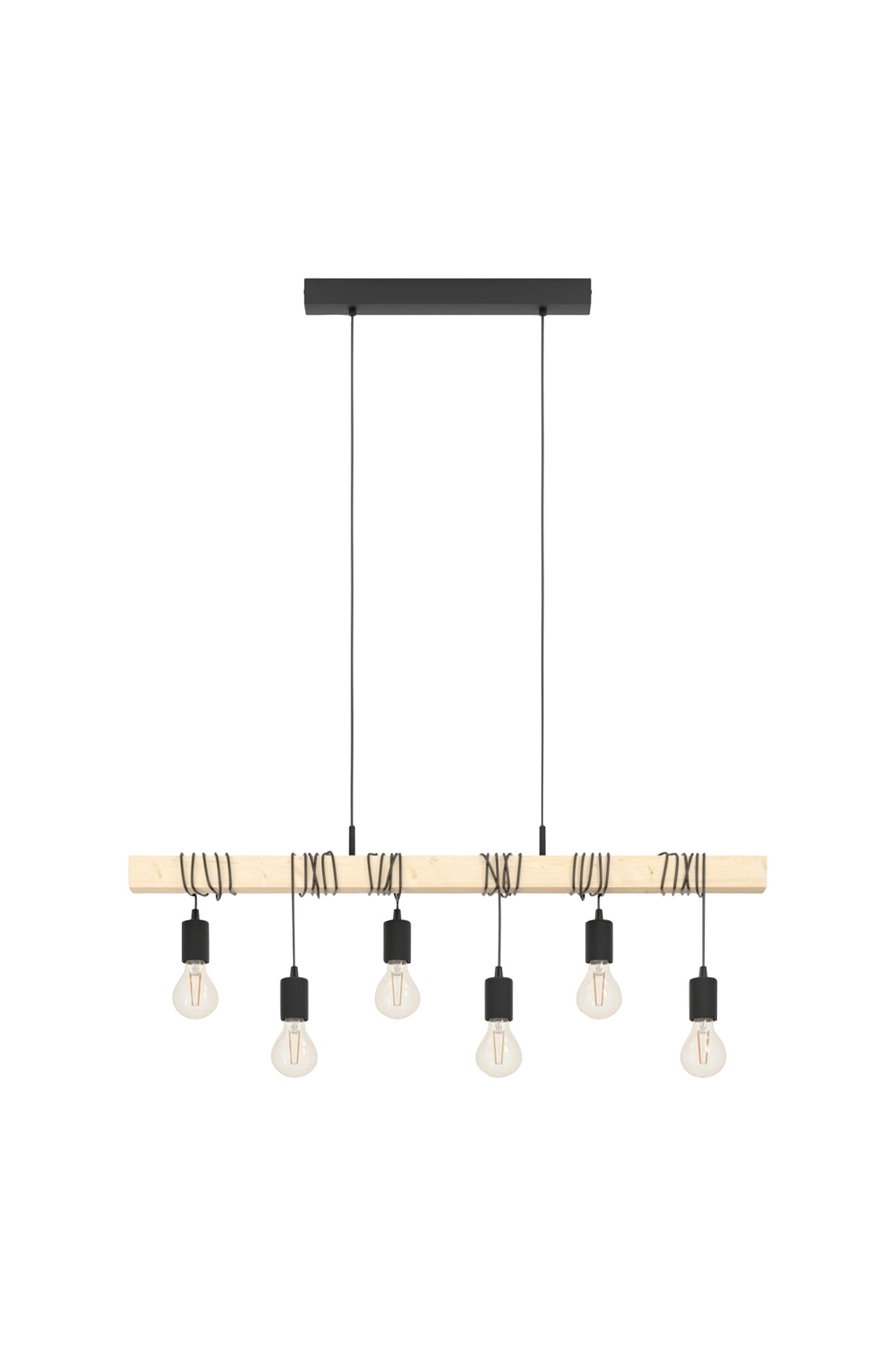 Levert på 1-2 uker - Farge: black og trebjelke med seks opphengte black lampeholdere