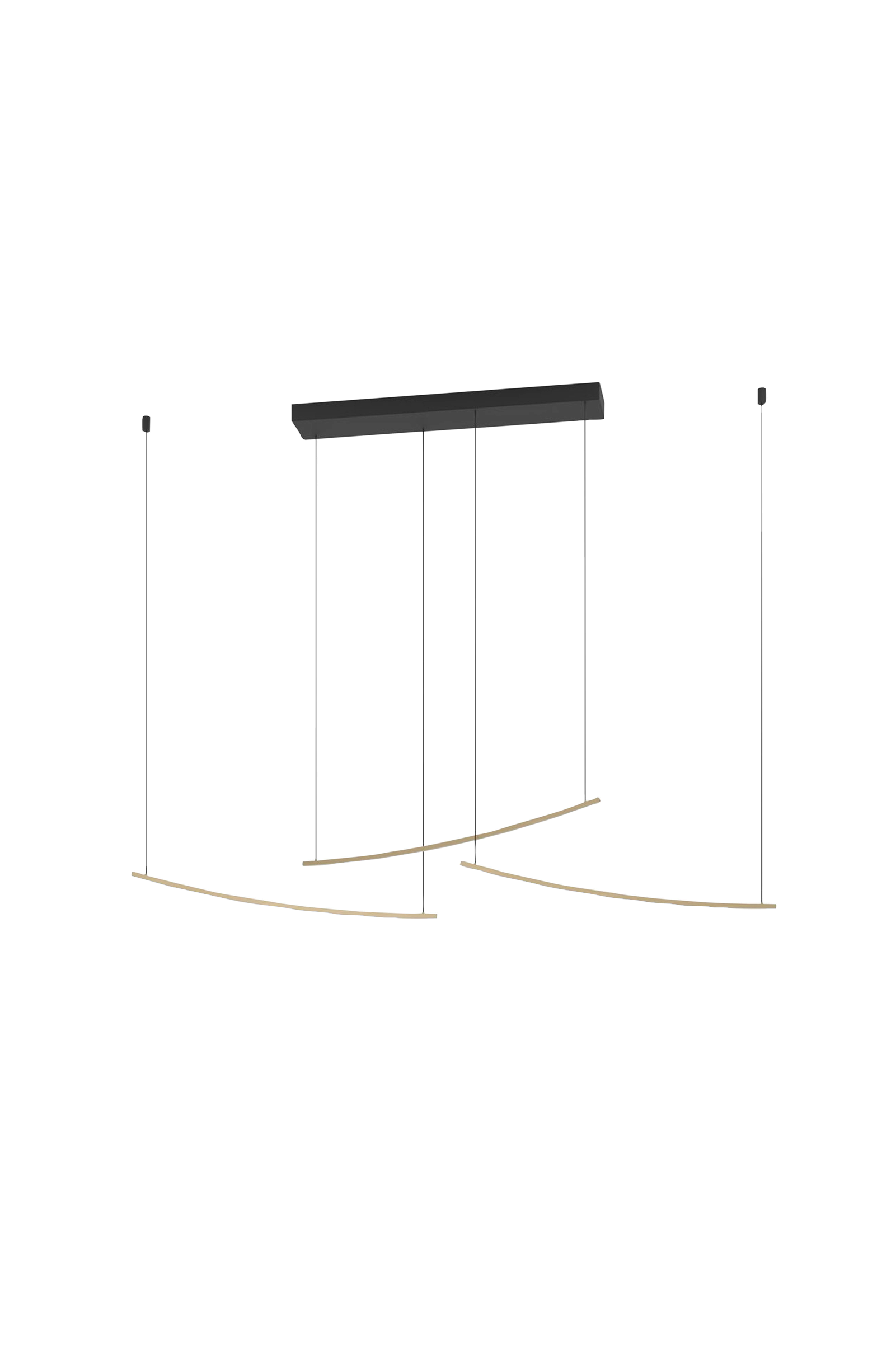 villeggi led-pendellampen gir hjemmet ditt et elegant preg. Den slående designen består av tre svakt buede lysprofiler som henger i fine kabler, noe som skaper et spesielt svevende inntrykk. Den matte messingfinishen gir lampen en varm og sofistikert utstråling. Takket være den integrerte cct-funksjonen kan lysfargen justeres trinnløst fra varmhvit til dagslyshvit - perfekt for enhver stemning, enten det gjelder en koselig middag eller fokusert arbeid. Den delikate konstruksjonen og de moderne linjene gjør villeggi til et spesielt blikkfang over spisebordet eller i åpne oppholdsrom. Høydejusteringen gir ekstra fleksibilitet under installasjonen.