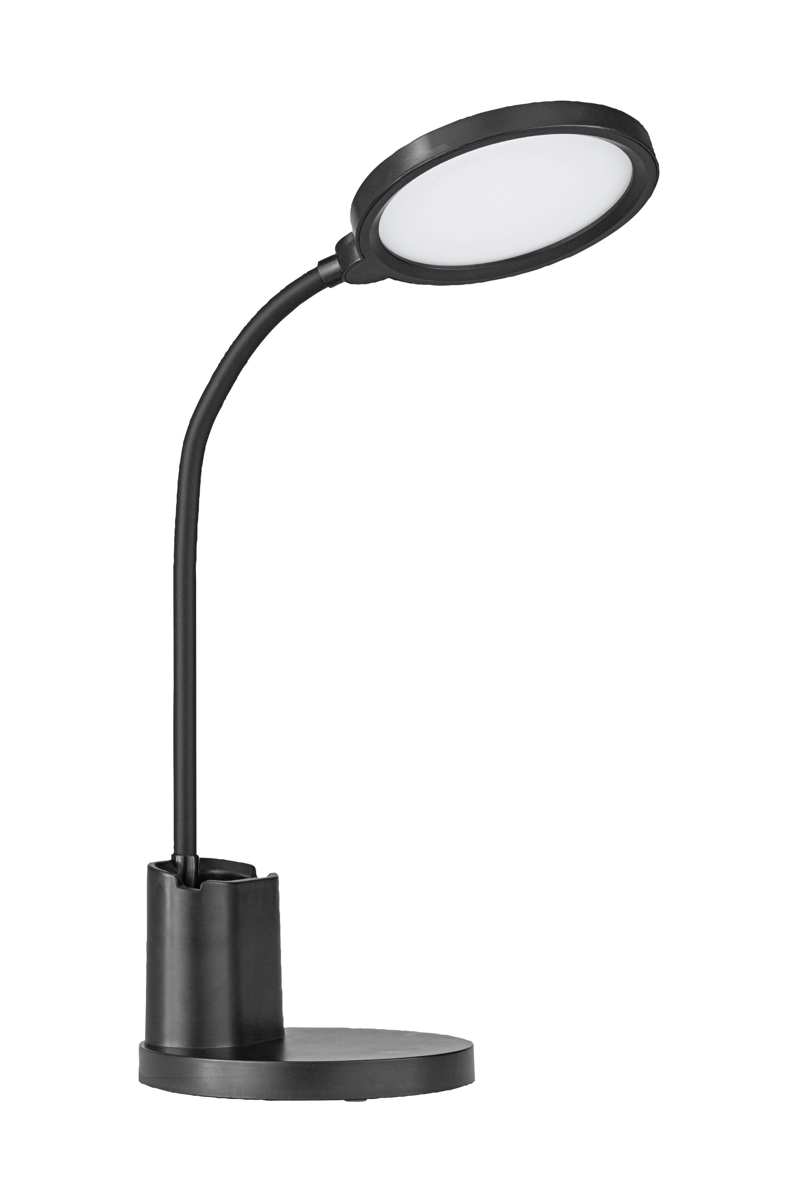 brolini er en batteridrevet led-bordlampe med svart eller hvit plaststruktur og en fleksibel, justerbar nakke og hode. Skrivebordslampen har praktisk oppbevaring med en pennholder, som også kan brukes som smarttelefonholder. Skrivebordslampen har integrerte lysdioder i hodet som gir et behagelig lys som kan justeres etter behov. Velg mellom et varmt hvitt, nøytralt hvitt og kjølig hvitt lys ved å berøre "touch me"-sonen på lampefoten, som har en ekstra funksjon for å veksle mellom lysstyrkenivået og slå lyset av og på. Produktet har et innebygd batteri, noe som gjør det til en enkel og praktisk belysningsløsning som kan plasseres der du vil ha den, og lades ved hjelp av den medfølgende USB-kabelen. Den klassiske skrivebordslampen passer sømløst inn i moderne interiør og gir ideell belysning til arbeidsplassen din, enten det er på skrivebordet på kontoret eller hjemmekontoret.