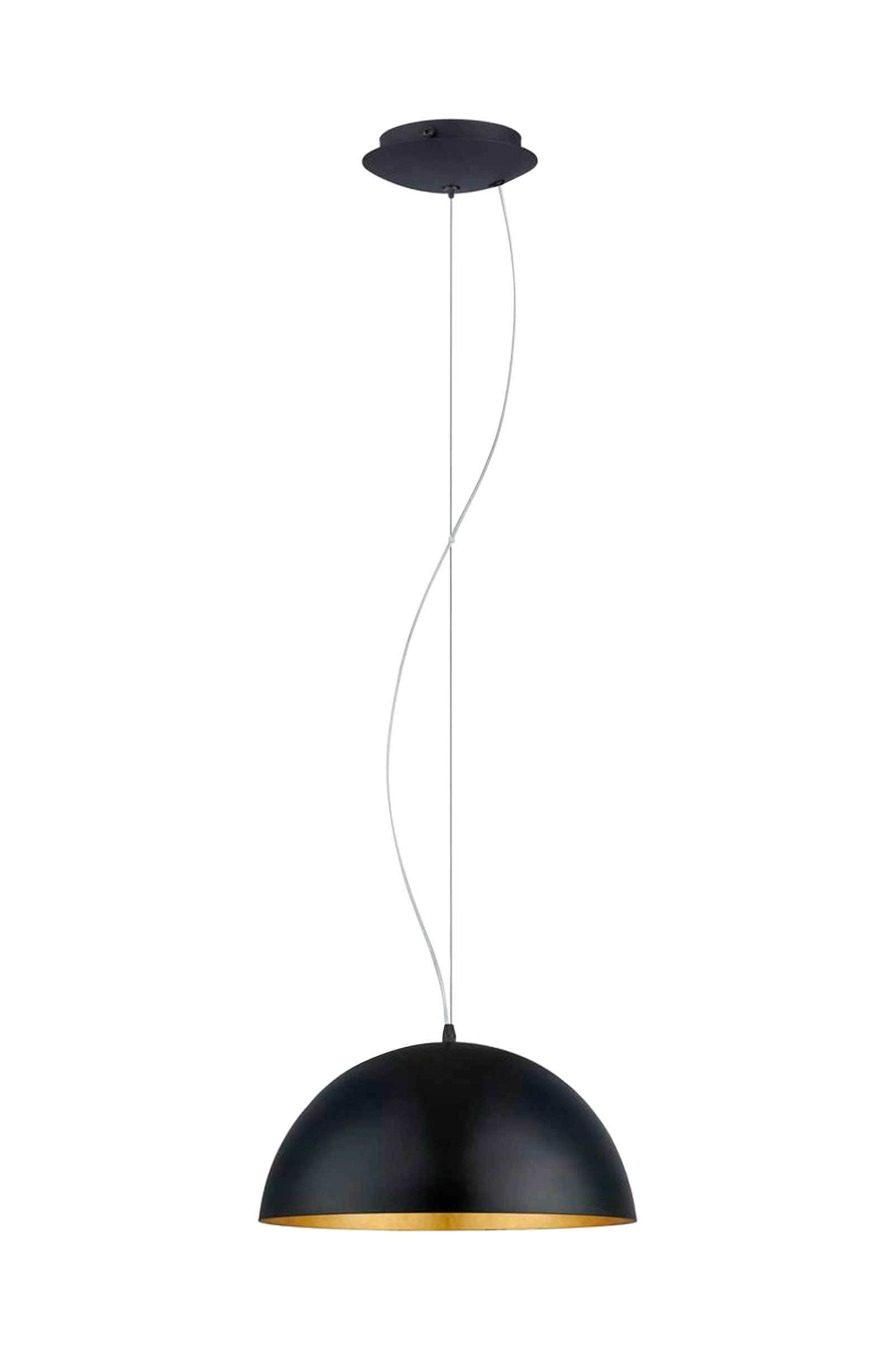 gaetano 1 pendellampe har en rund lampeskjerm i svart stål med gullfarget innside. Pendellampen har en diameter på 38 cm og passer til interiør i industriell stil, og vil skape den rette stemningen i stuen eller spisestuen over spisebordet. Lyspæren er ikke inkludert. Produktet har en e27-fatning og krever 1 e27-pære.