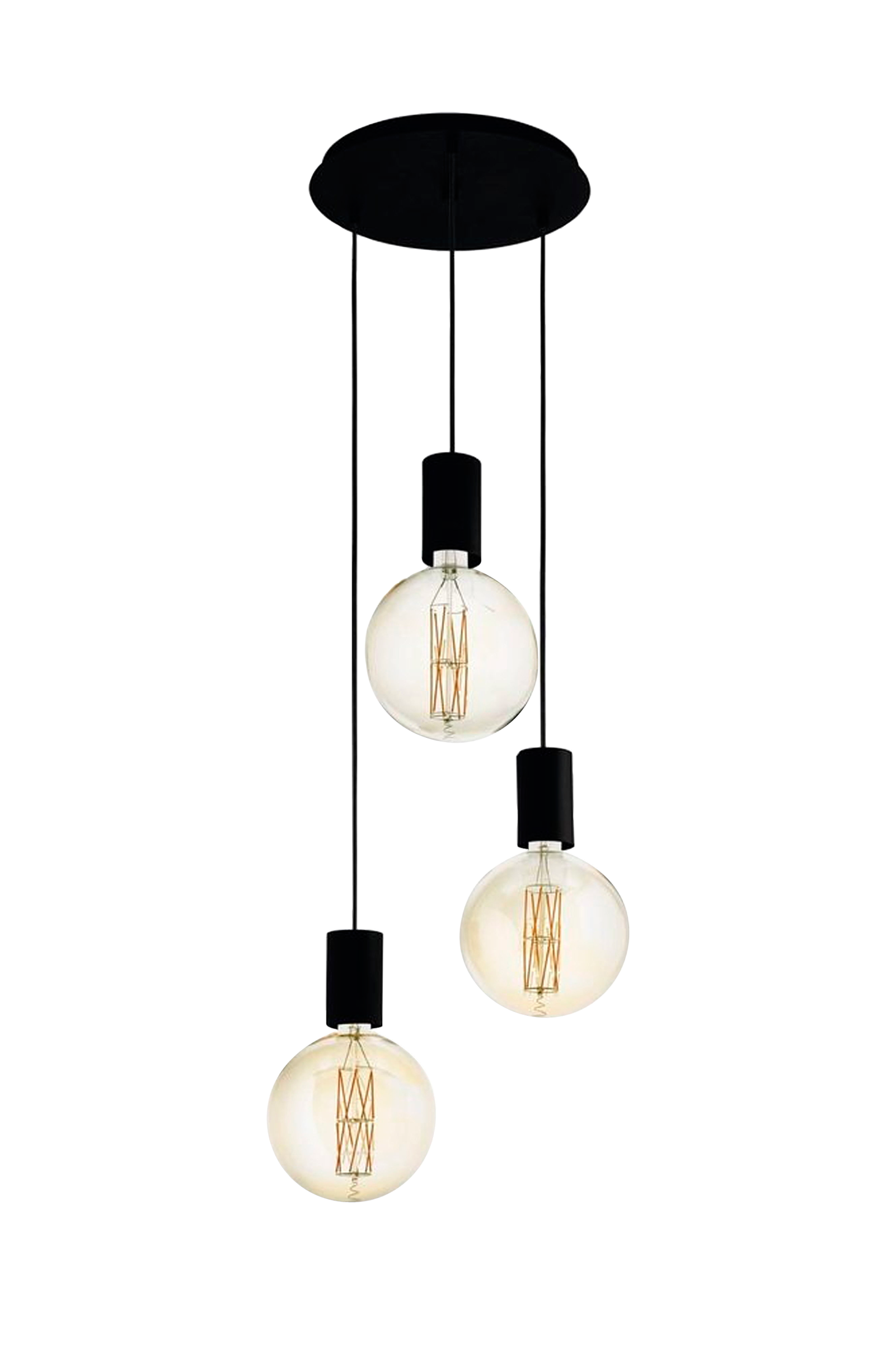 pozueta pendellampen har en stor, svart baldakin og tre lampeholdere. Lampeholderne henger i ulike høyder på tekstilkabler av høy kvalitet. Produktet har et minimalistisk utseende og en synlig lyspære som passer godt inn i moderne og skandinavisk interiør, og gir attraktiv belysning i alle rom, enten det er i stuen eller over bordet i spisestuen. De avbildede glødepærene i størrelse large er ikke inkludert. Produktet har e27-fatning og krever e27-pærer.