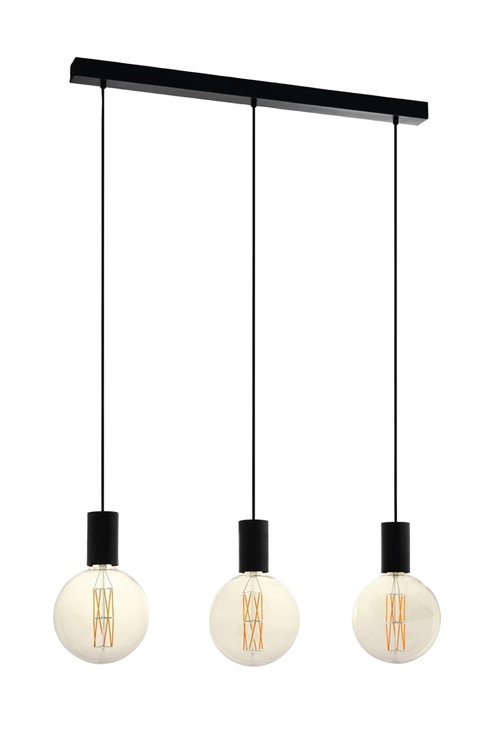 pozueta pendellampen har en baldakin i svart metall og tre lampeholdere. Produktet har et minimalistisk utseende og en synlig lyspære som passer godt inn i moderne og skandinavisk interiør, og gir en attraktiv belysning til ethvert rom, enten det er i stuen eller over et langbord i spisestuen. De avbildede glødepærene er ikke inkludert. Produktet har e27-fatning og krever e27-pærer.
