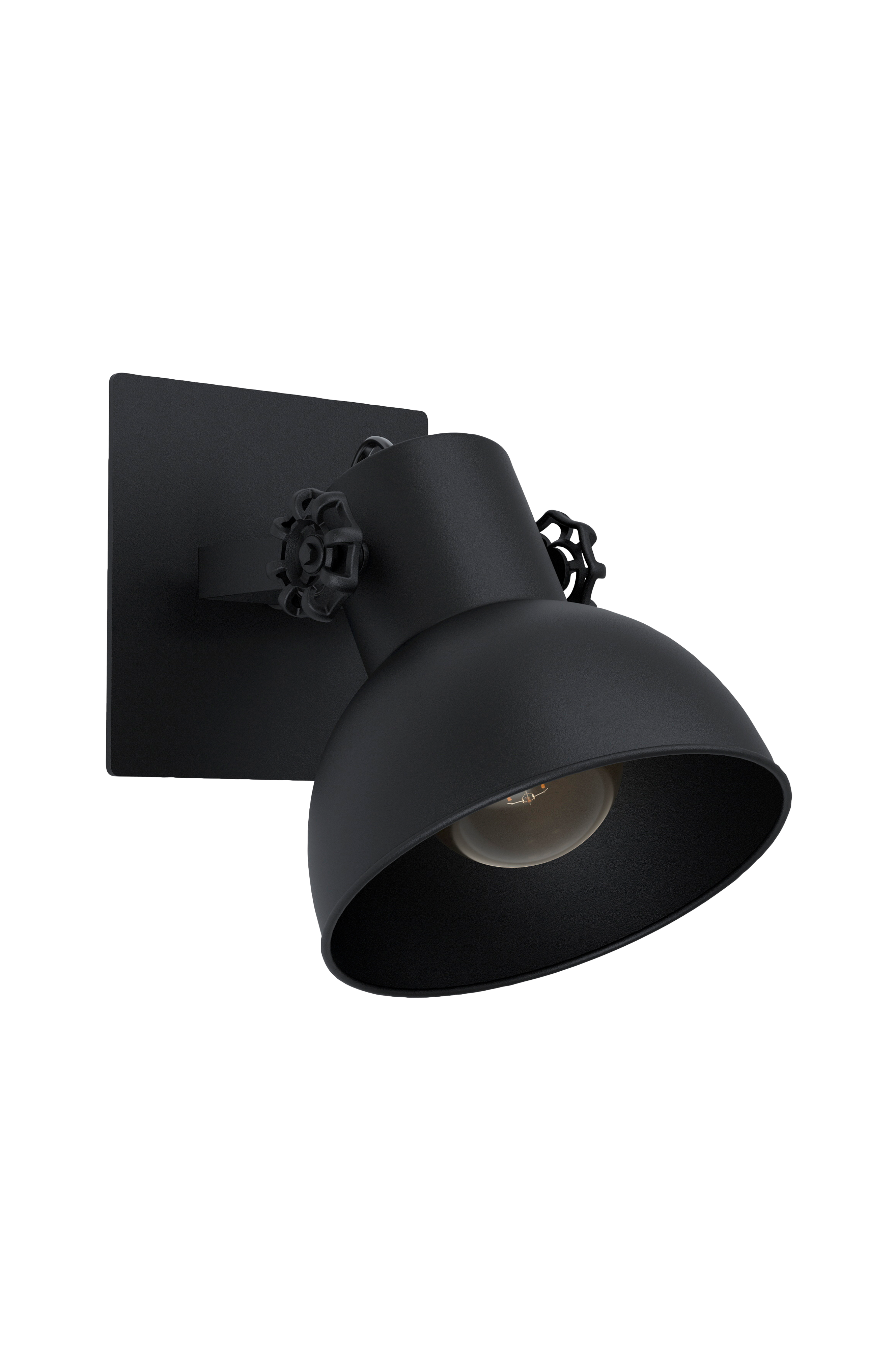 barnstaple 1 vegglampe er laget av svart metall med et justerbart, svart lampehode. Med den monokrome designen passer produktet sømløst inn i moderne og industrielle interiører. Det dreibare lampehodet gjør at du kan justere lyset slik at det fremhever enkelte områder i rommet, enten det er i stuen, soverommet, gangen eller spisestuen. Produktet krever 1 e27-lyspære, som ikke er inkludert.