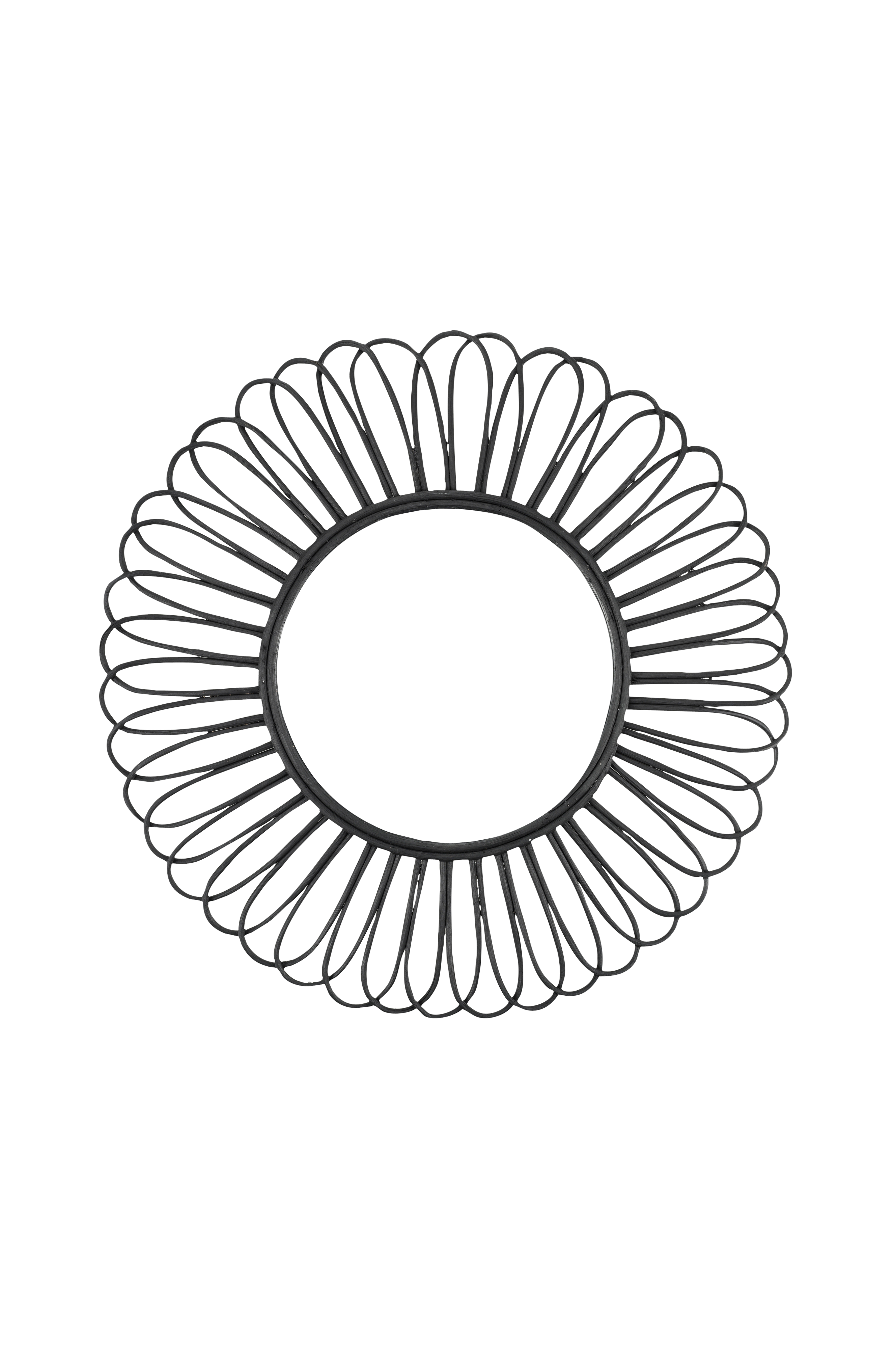 Dekorativt speil i svart rotting, høyde 80 cm. Tørkes med en tørr klut.