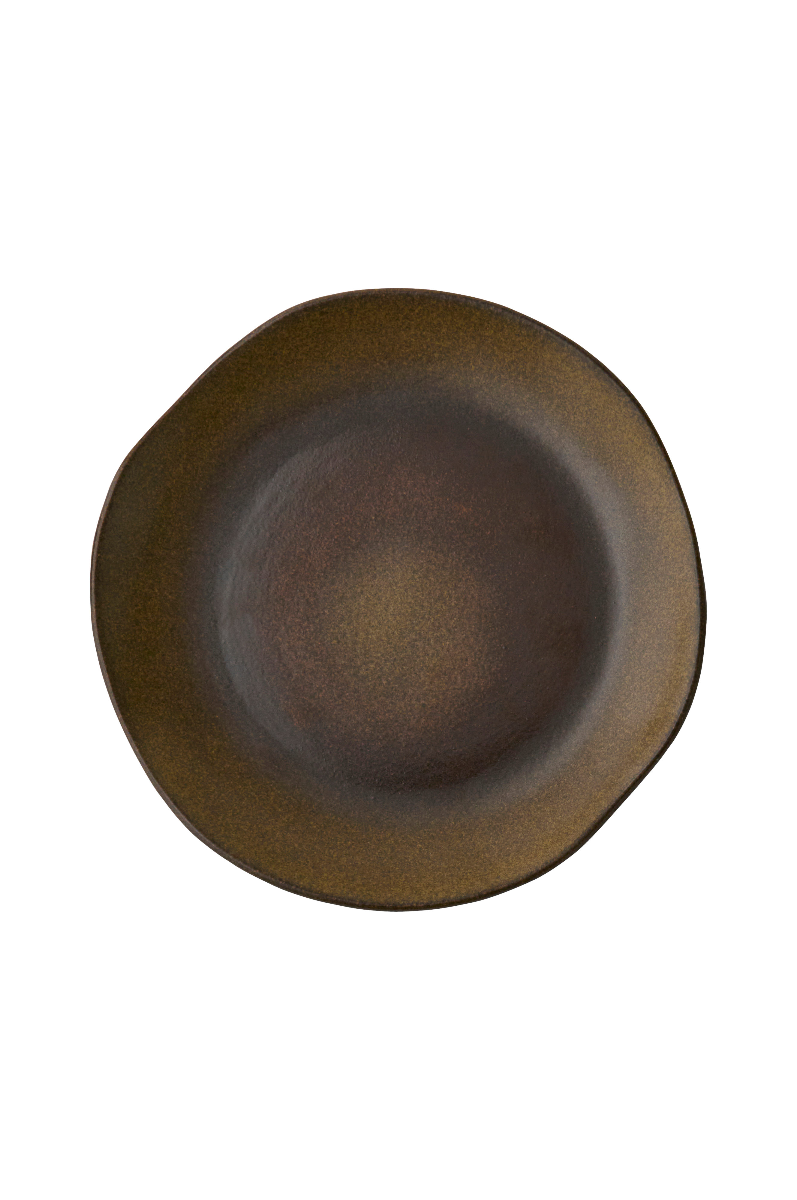 Håndlaget asjett av porselen med uregelmessig tekstur og uregelmessige kanter. Selges enkeltvis.