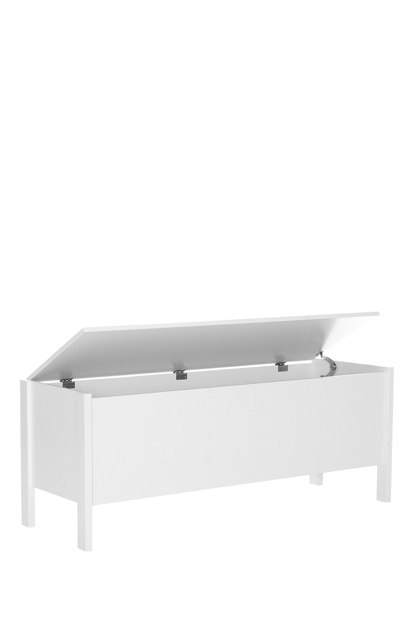 av spraymalt MDF. Oppbevaring i benken, lokken kan løftes og låses i øverste posisjon. Høyde 46 cm. Lengde 120 cm. Dybde 40 cm. Lev. umontert. Maks vekt 100 kg.