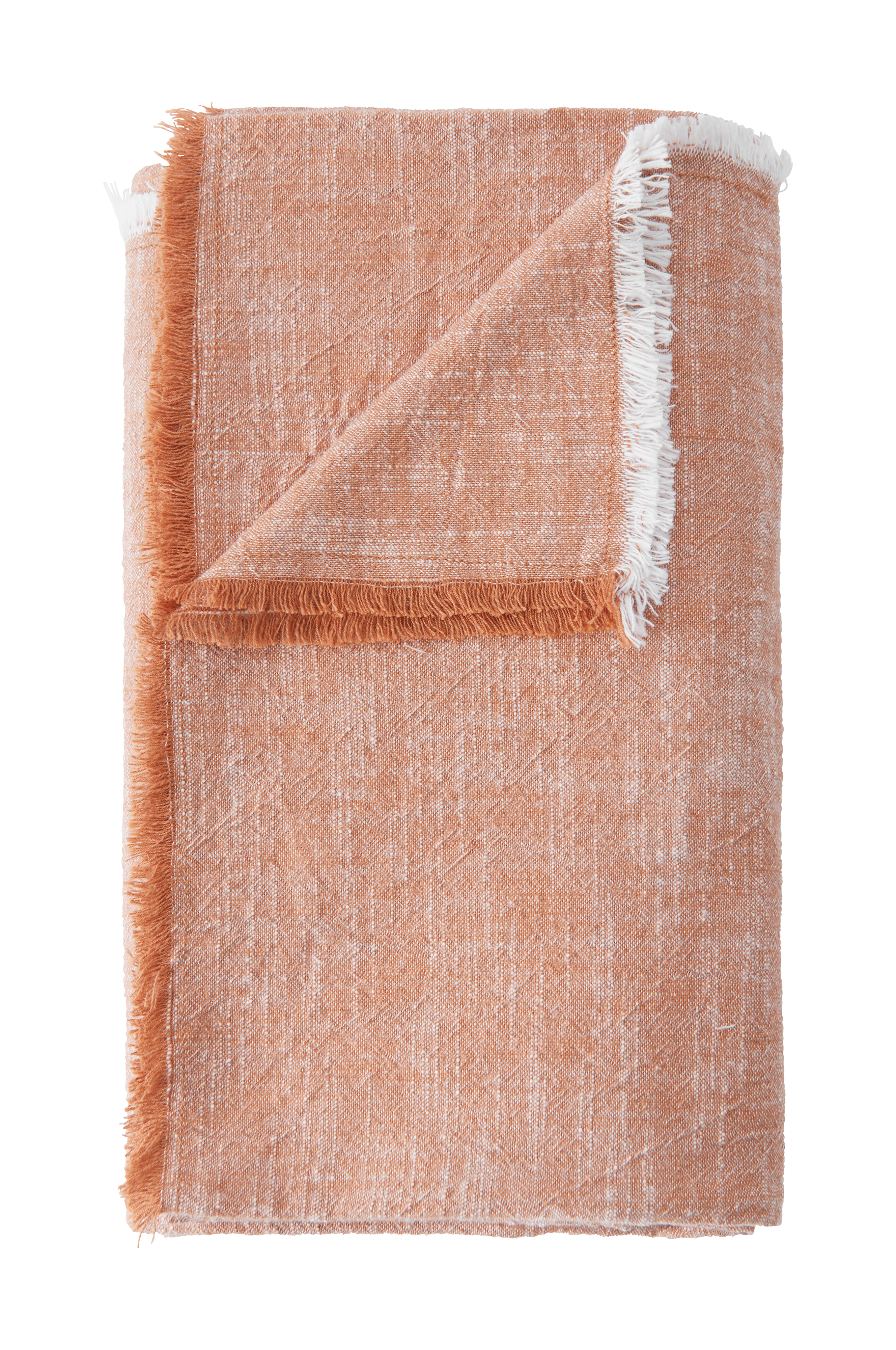 Duk i vevd, økologisk bomull med melert farge og slubbeffekt som innebærer at stoffet har en lett tekstur. Frynser på 4 sider.