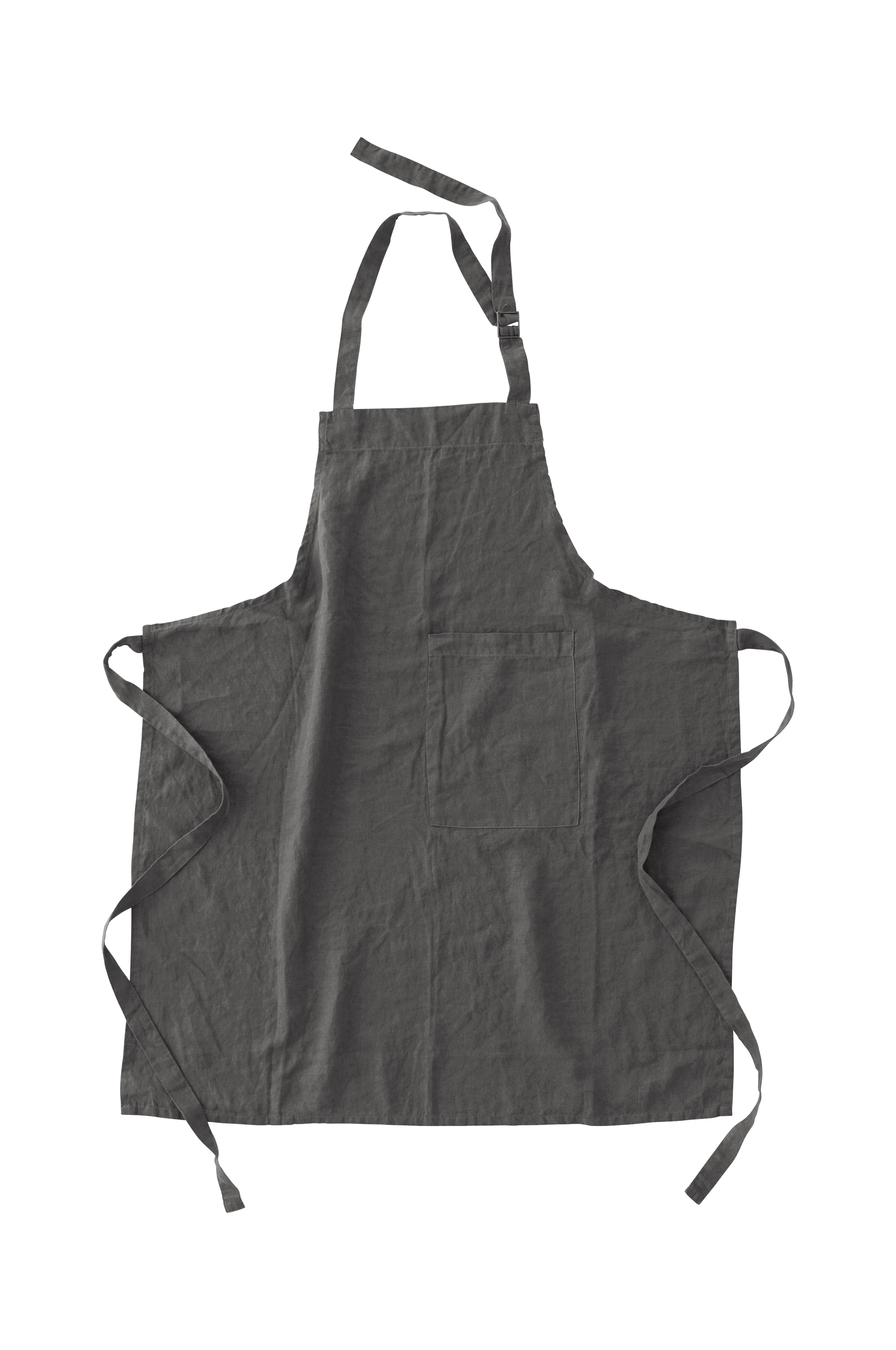 Forkle av 100% fransk lin i vasket kvalitet. Et klassisk, vakkert materiale med sval og myk følelse. Justerbart nakkebånd med messingfarget metallspenne. Påsydd knytebelte. Lengde 95 cm.