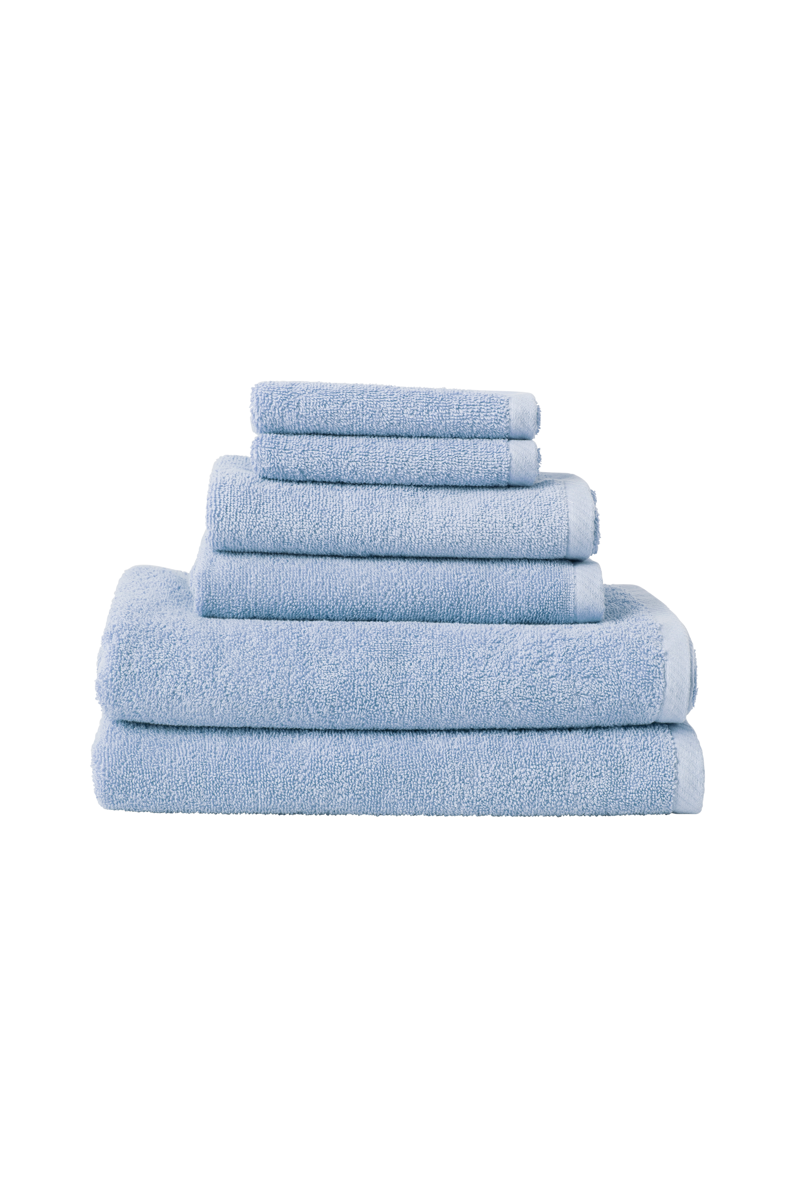Håndklær i myk og herlig bomullsfrotté. Vekt 500 g/m2. Settet inneholder 2 håndklær 30x50 cm, 2 håndklær 50x70 cm og 2 badehåndklær 70x140 cm.